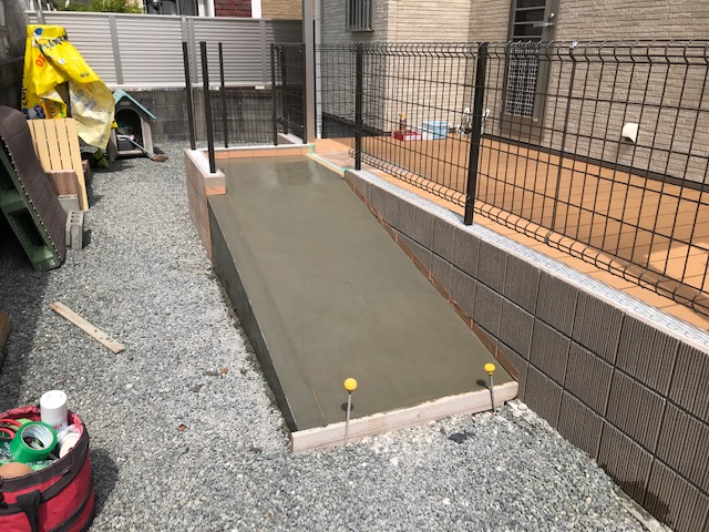 愛犬の介護用ウッドデッキスロープ リフォームエクステリア 年齢の為足の手術をした愛犬の介護にと 散歩用に出入りのしやすいスロープをとご相談 勝手口に広い日向ぼっこスペースを設け スロープで緩やかに乗り降りできるよう設計しました 小動物は家族 私もお気持ちすごくわかります 家族が快適に暮らせるエクステリアエクステージは心から応援しますひがしぐち