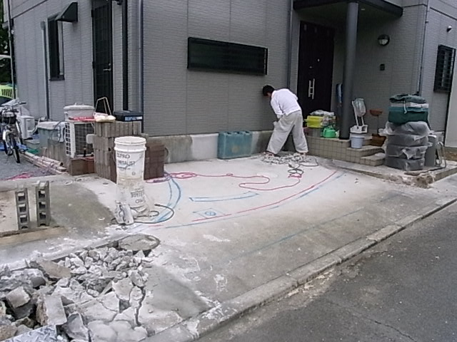 DIYが得意な、M様御主人。自作の門柱を解体するのは、ちょっともったいない気がしますが、エクステージが素敵に仕上げて見せます、ご安心ください。