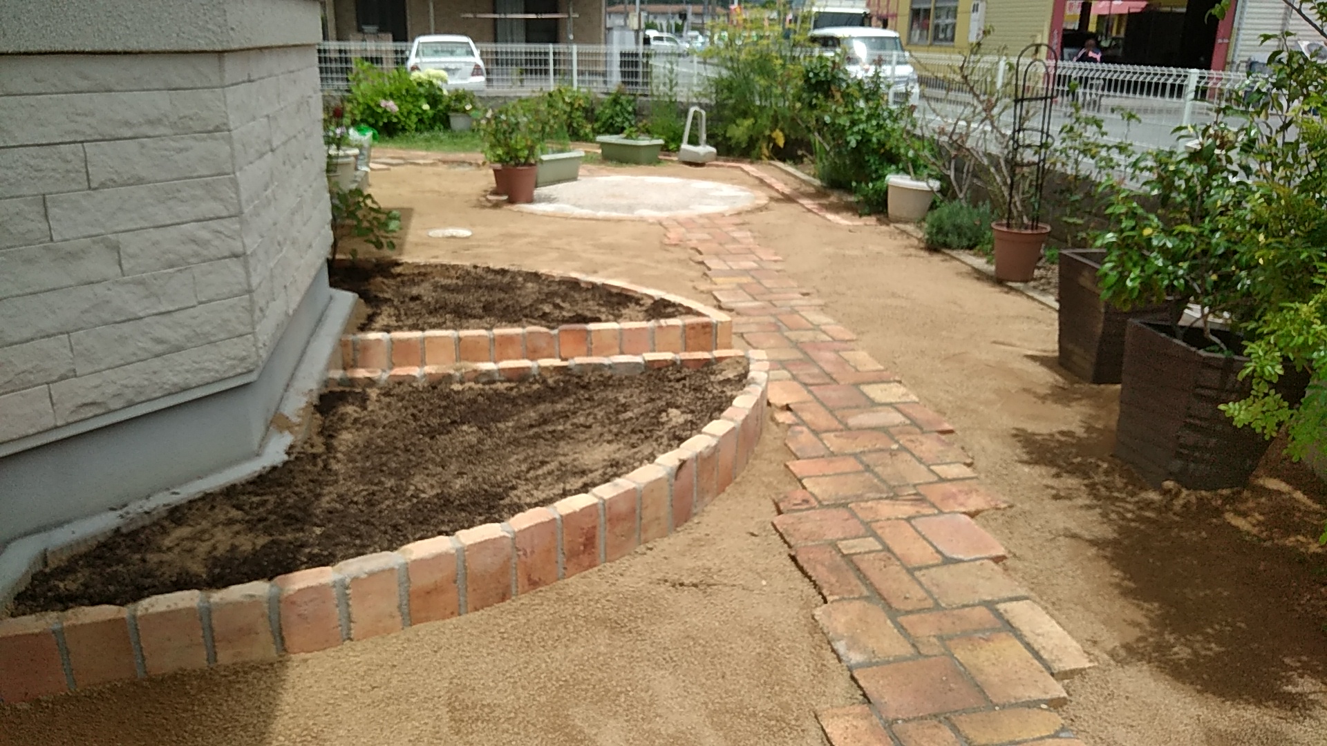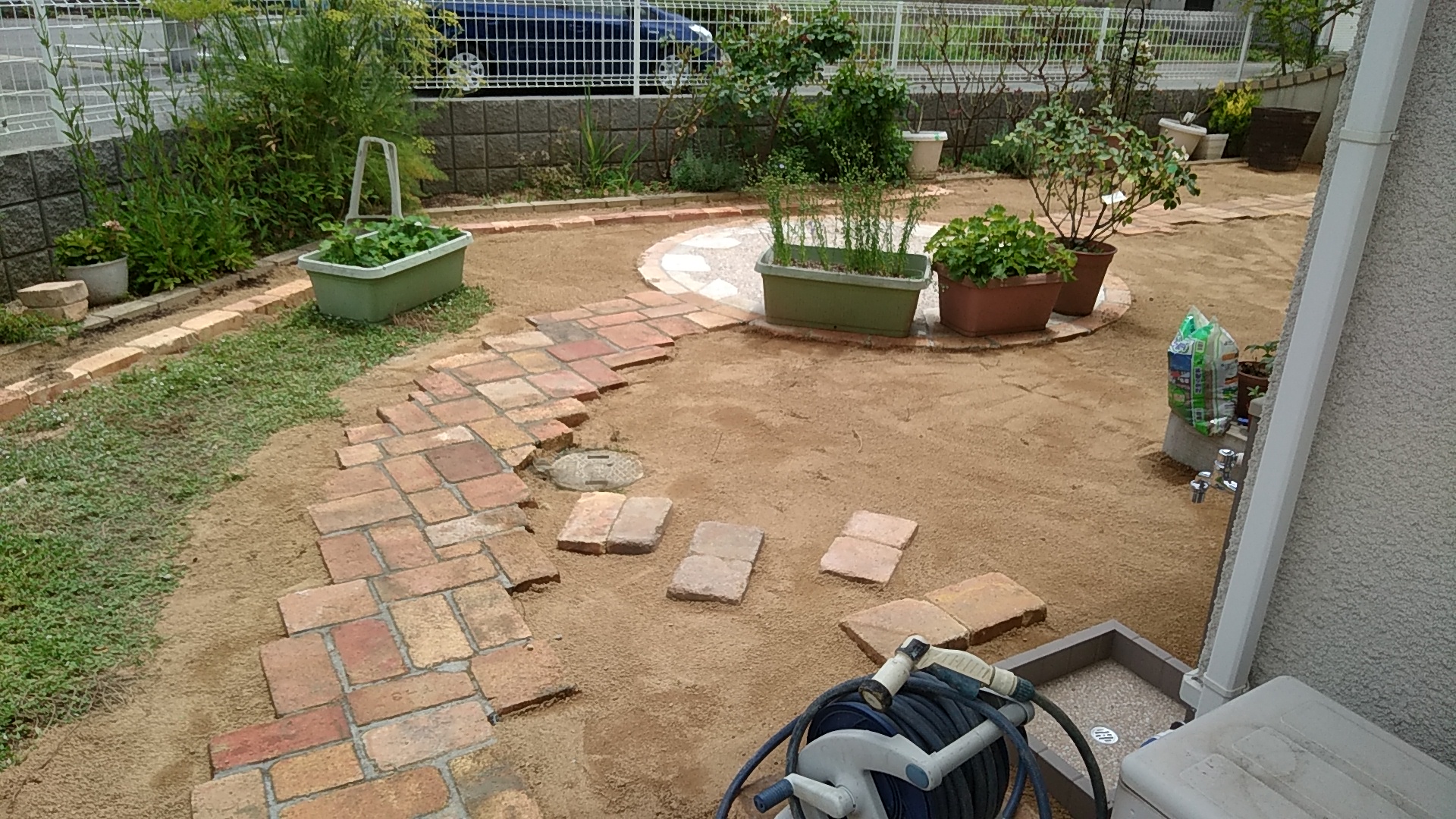 姫路お庭リセット お庭のリノベーション レンガサークルで一度お庭をリセット OB様お庭工事例