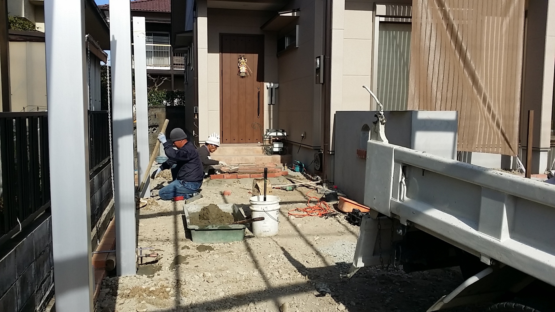 今日は寒いです週の中ごろ雨みたいですねちょっと工程に響くかも・・・太子町2世帯エクステリア工事庭部分...