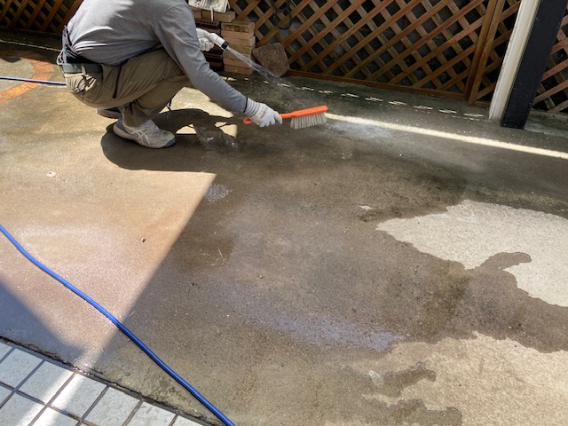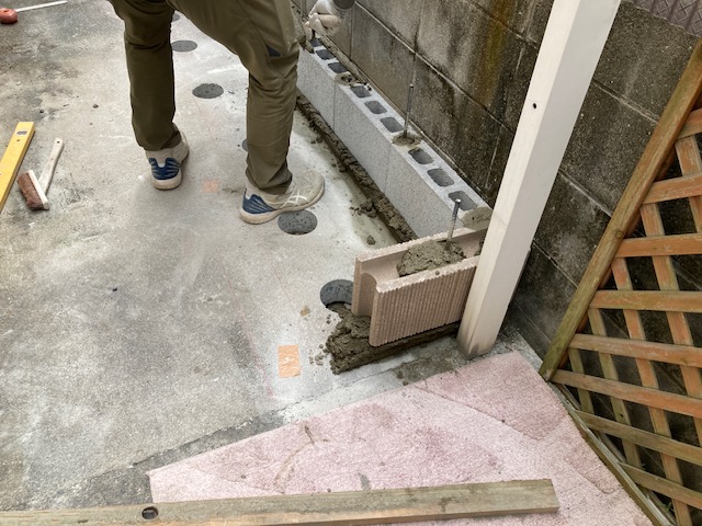 既存が土間でブレーカーの削岩振動も建物に影響があると判断し