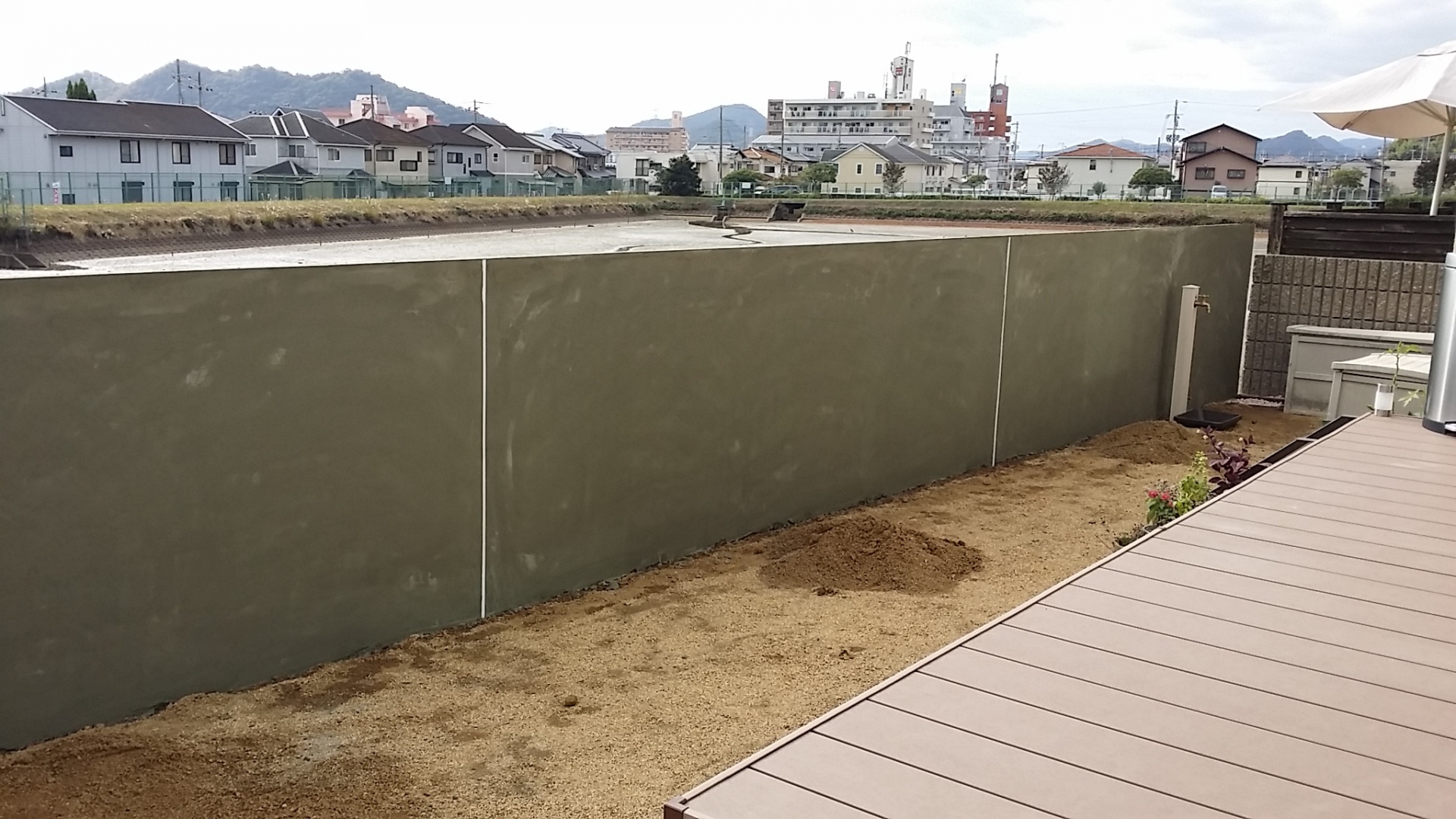 リビングから見えるブロック面を 明るい色の塗り壁で化粧します