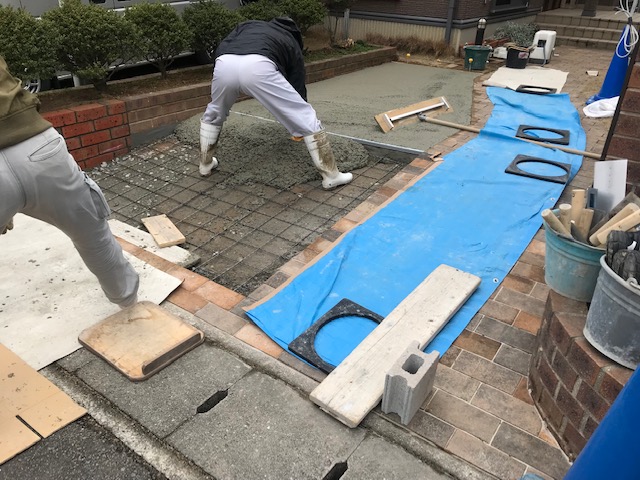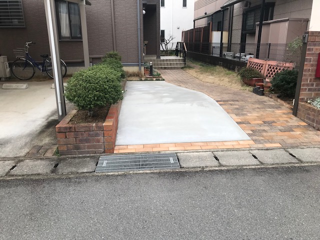 駐車スペース拡張工事 エクステリアリフォーム 工事店 門柱を片側壊しての車庫拡張工事ですエクステリア 拡張工事はエクステージにお任せください レンガも撤去後類似色で継ぎ足し車庫鋤取り きれいになりました車庫拡張工事は他店さんとは違う1級土木施工管理技士の施工管理するエクステージ リフォーム室にお任せくださいひがしぐち