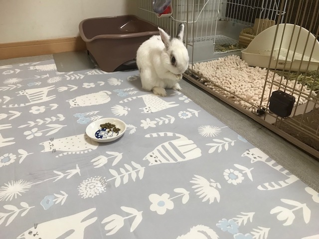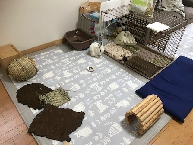 セロくん 元気になりました(^^♪ この暑さで先日 体調を崩したセロくん 神戸の病院行って お薬もらって かしこく飲んで 元気になりました(^^♪ マットも夏用に新品に入れかえてもらって 元気に遊びまわっています ほんとよかったですゲージ回りもできるだけバリアフリーにしましたほんと 温度管理が大事です姫路 うさぎブログひがしぐち