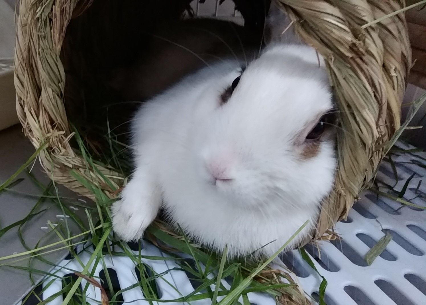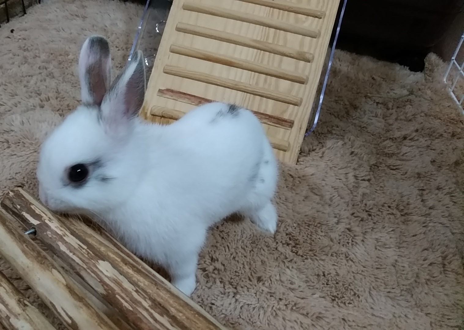 来年は ぼくの年だよ (^^♪ セロくんだよ 今年もありがとうございました。 来年はウサギ年待ってましたセロくんの出番(^^♪ なんチュー格好してるねん(^^♪ さむいよ~~~ ここならマシかも どこでも 一緒やわ(^^♪この子5歳5年前我が家に来たときは生後 3週間くらいでしたかまだ赤ちゃんの時 まだ よちよちでしたね(^^♪かわいい たっちしてもかわいかったな~~いつしか ちょっぴり態度もデカくなり(^^♪人間でいうとオッサンです(^^)/ この子 人懐っこい遊ぼって つんつんしてくれます来年 ウサギ年年賀はがきも この子メインです(^^)/冬の就寝はゲージに毛布をかぶせます 寒いもんね(^^♪丸くお餅みたいになっておやすみ(^^♪また来年 宜しくお願いしますエクステージひがしぐち