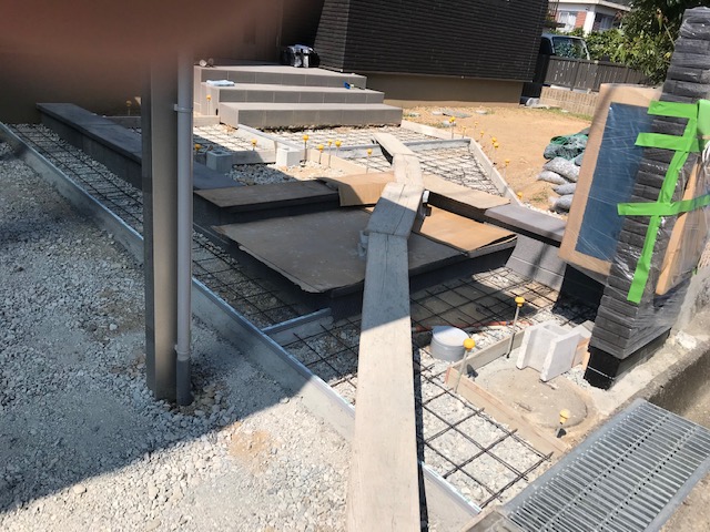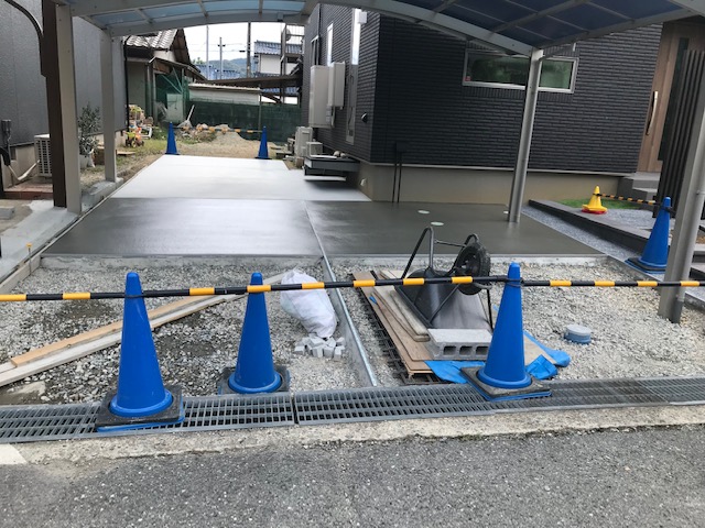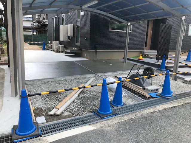 姫路の車庫土間コンクリート工事 アプローチ洗い出し