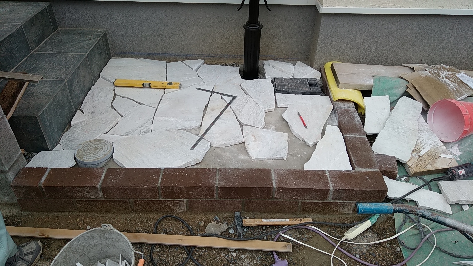 ホワイト乱形石貼アプローチ 姫路エクステリア
