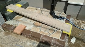 自然石の 白はセメントと化学反応で少し黄色くなります