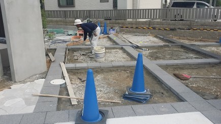 天気の合間に土間準備です