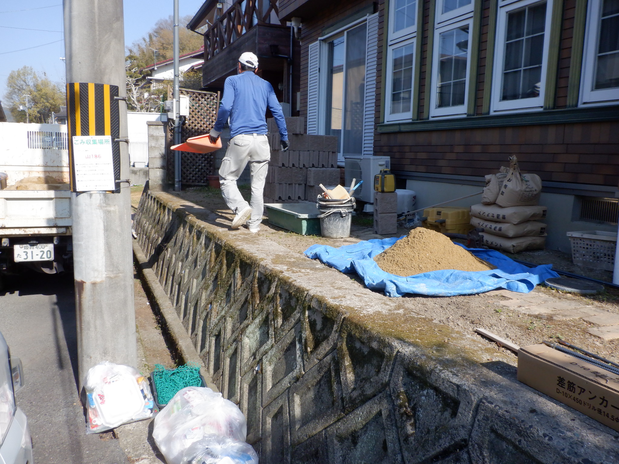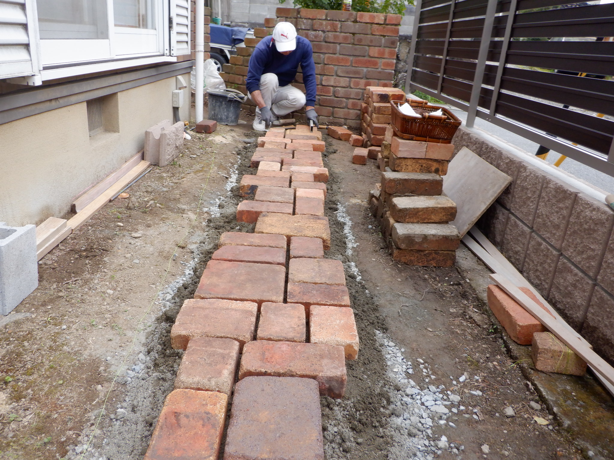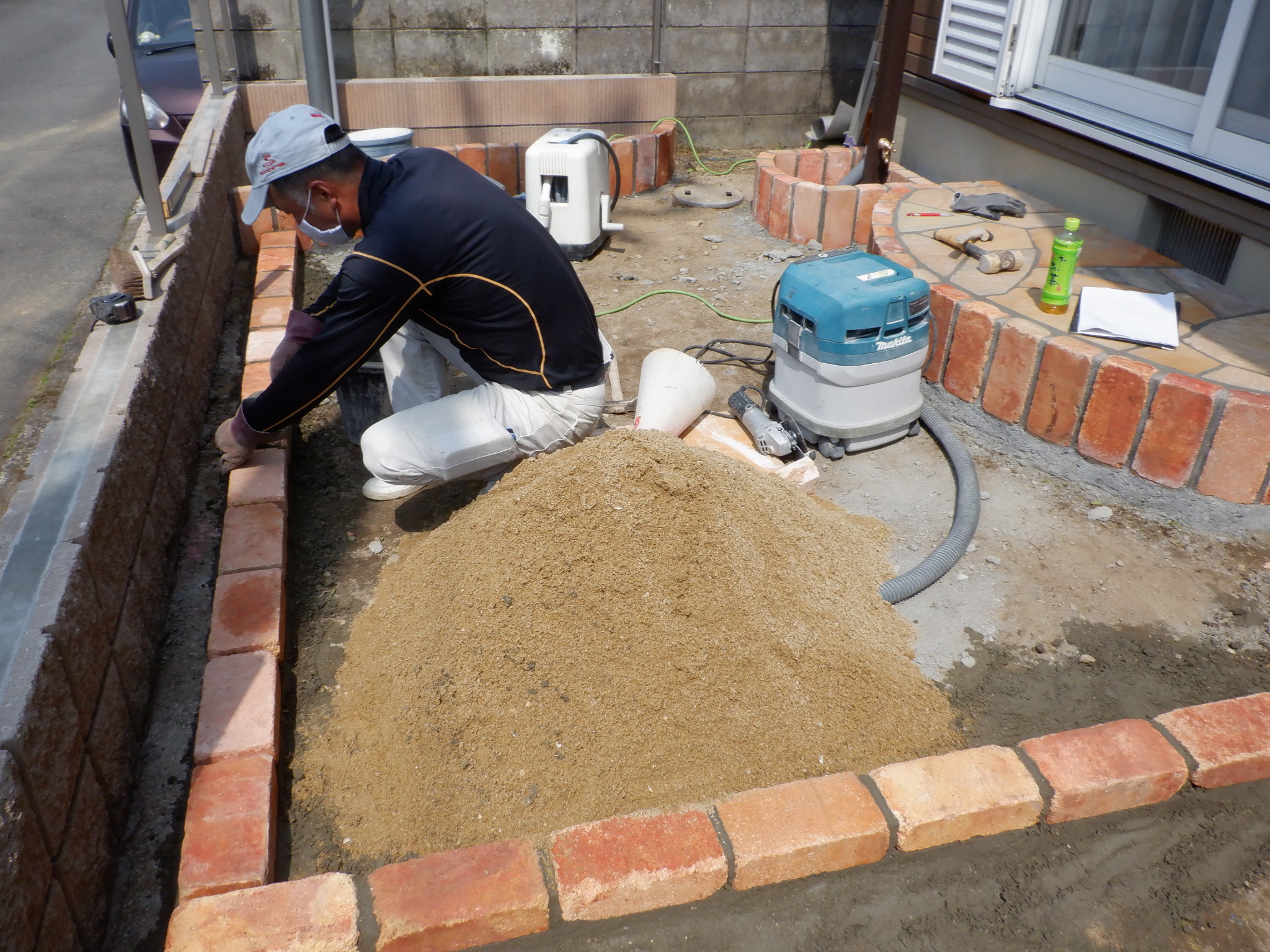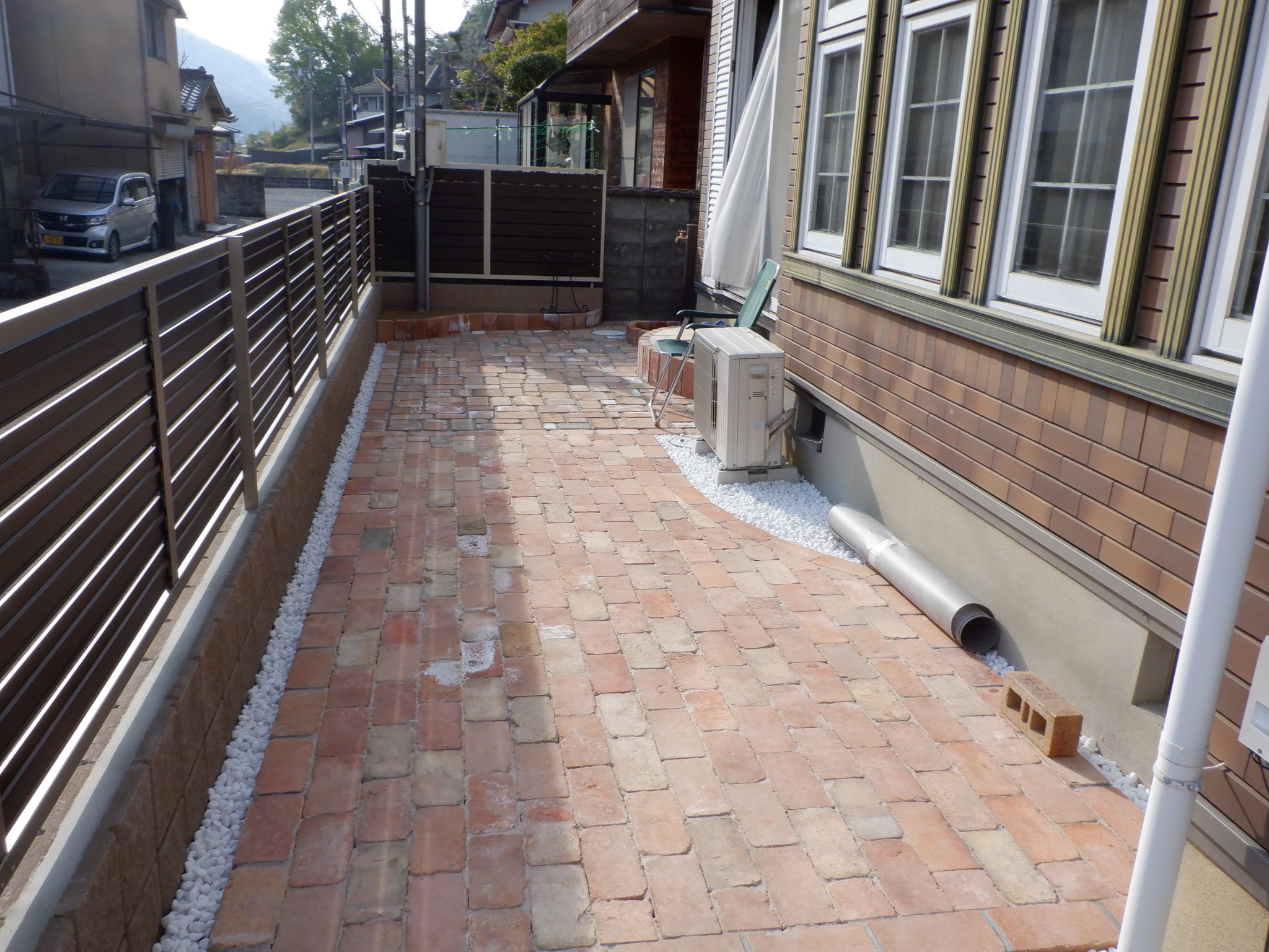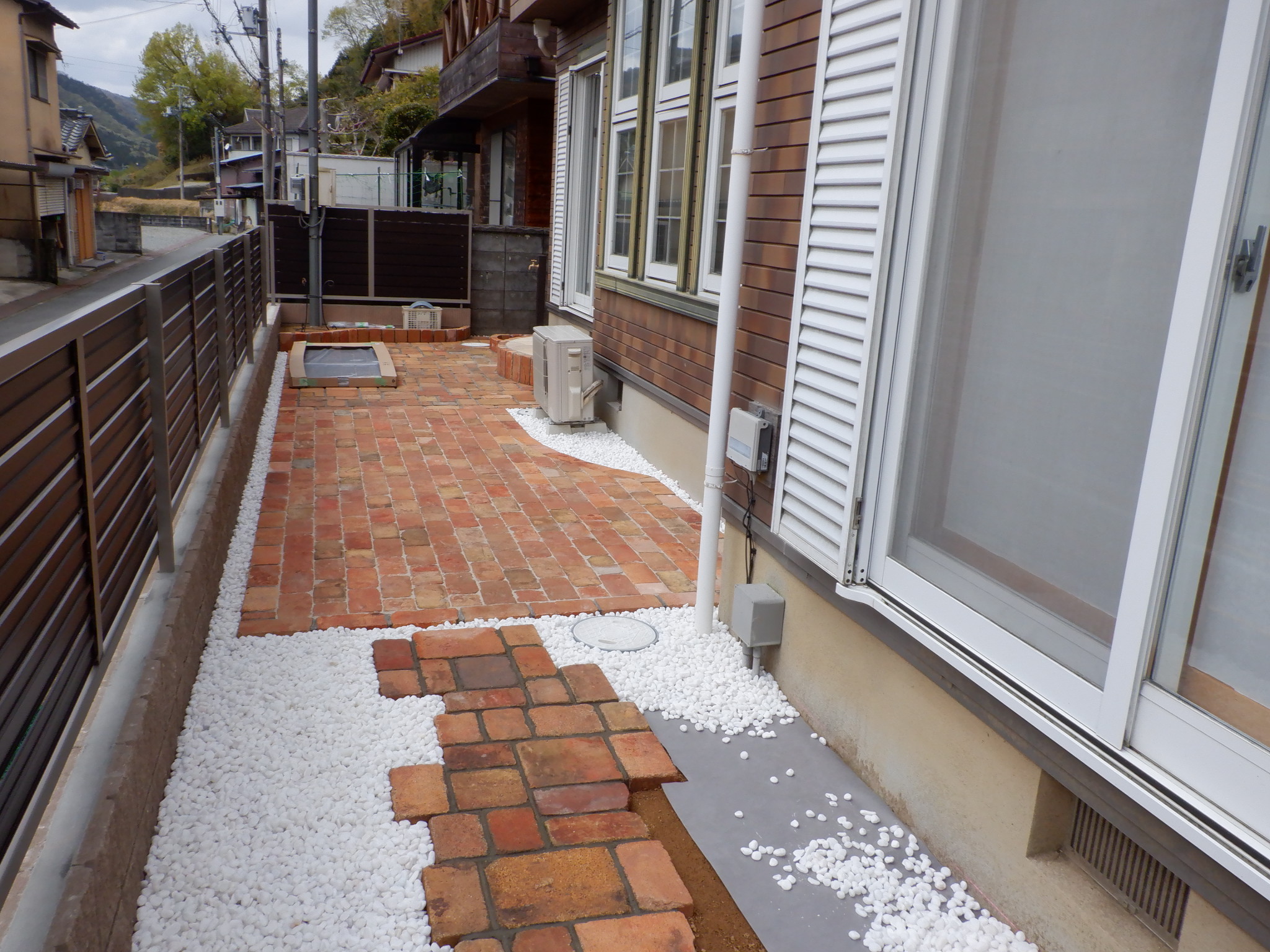たつの市エクステリアリフォーム 雑草対策の耐火レンガの庭