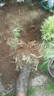 大きな穴が!今後は、もう少し掘って、花壇にと考えています。