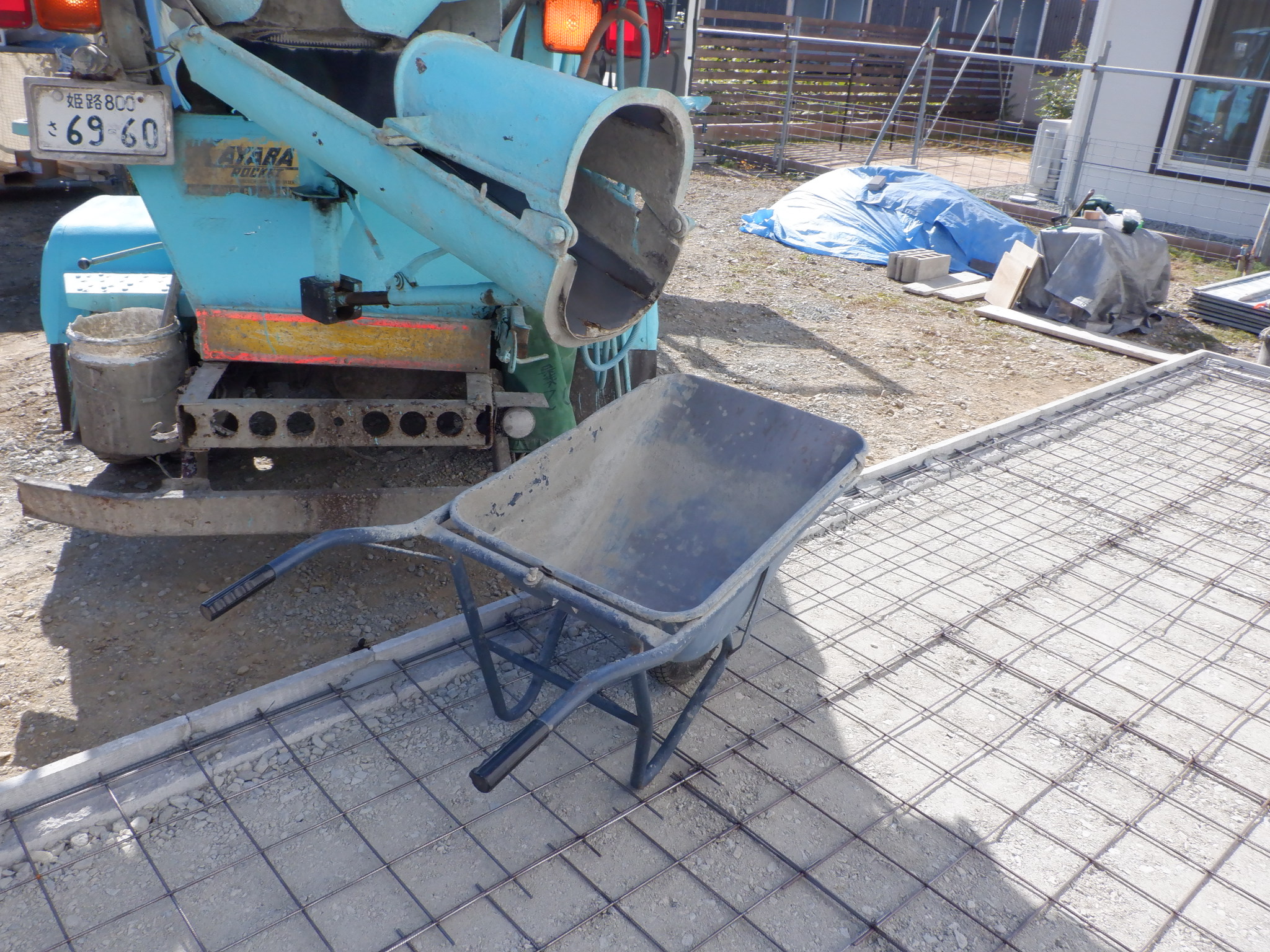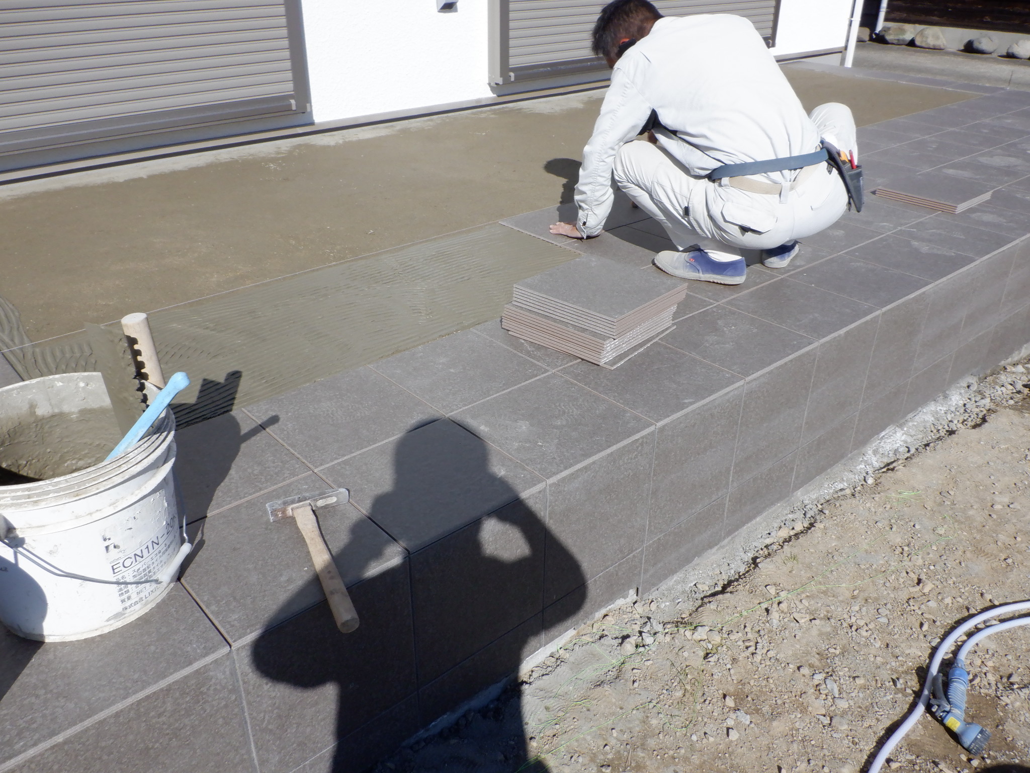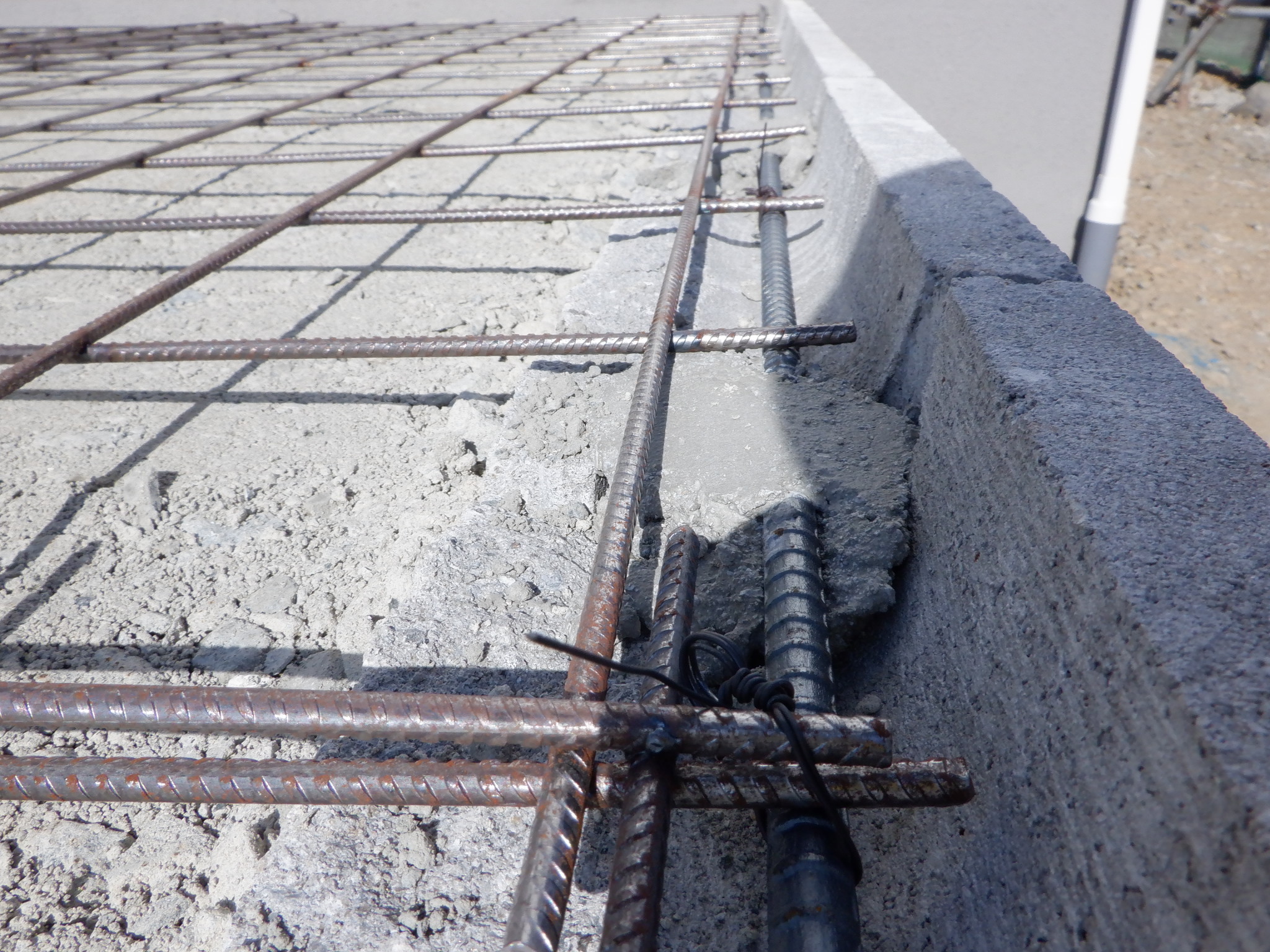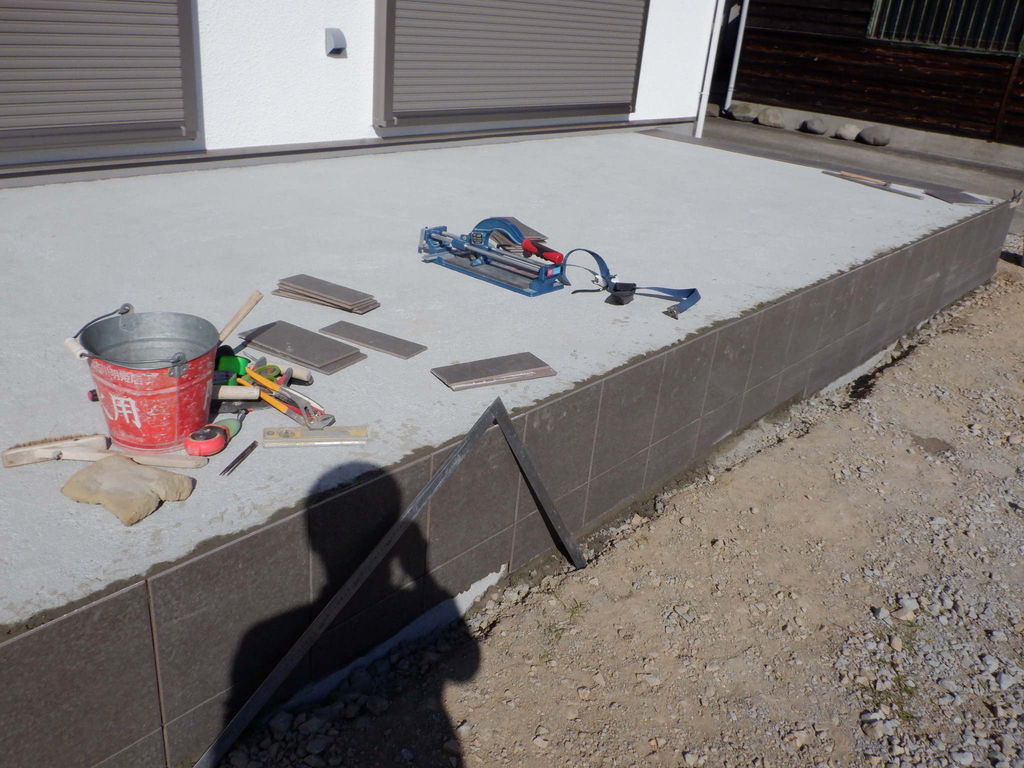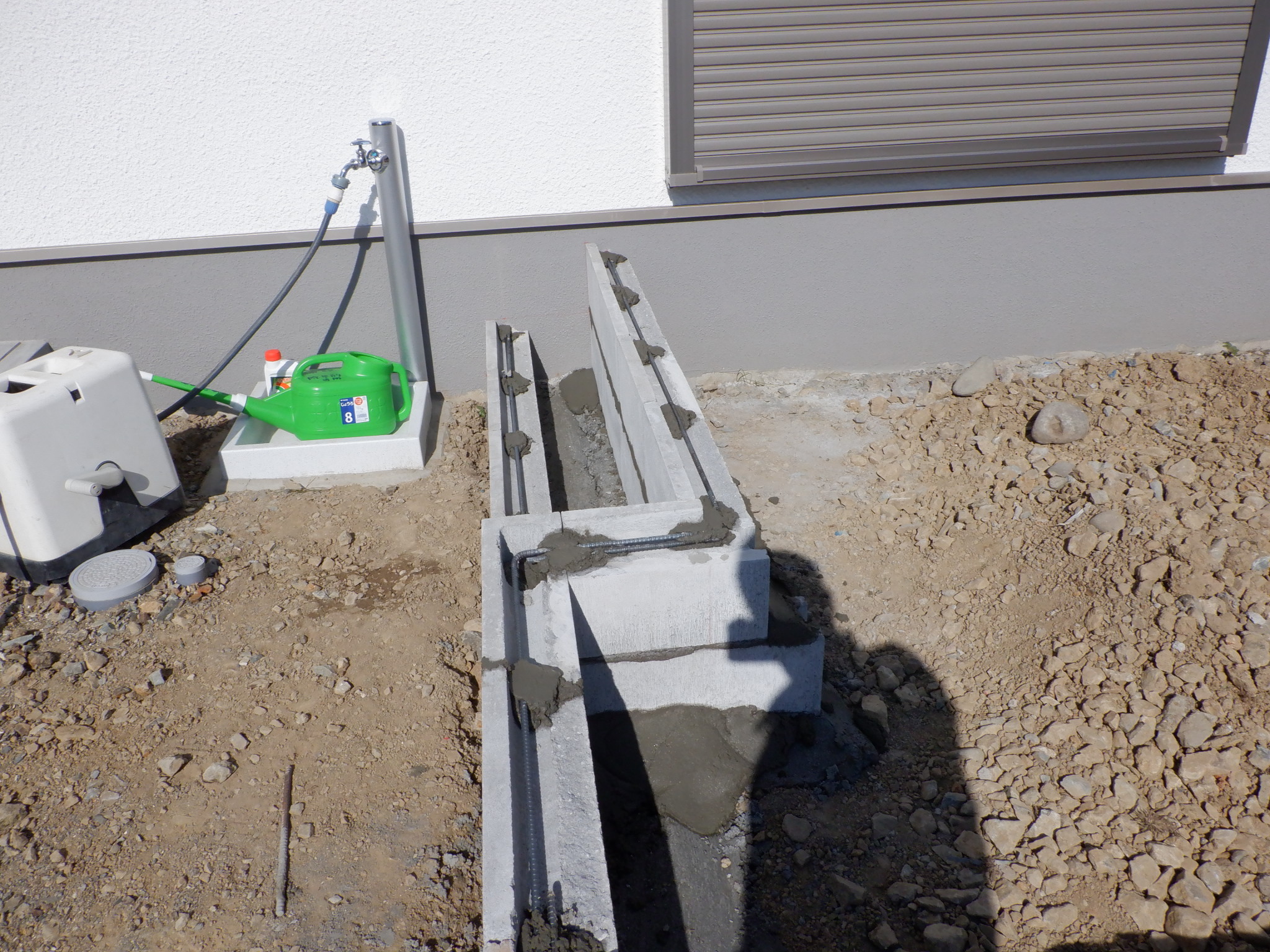 普通にブロックを積んだ上に下地セメントをとんと当てると