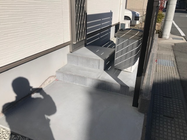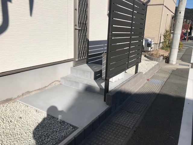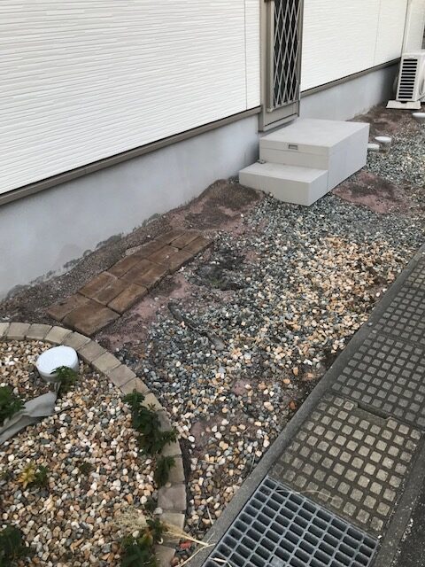 勝手口ステップを使いやすく エクステリアリフォーム 姫路 勝手口ステップをつかいやすくリフォーム 純正のステップをモルタルステップに変更工事 土留めのブロックを積んでブロックでステップを下地 目隠しのフェンスを取り付けて分別ボックスをセット使いやすい勝手口になりましたエクステリアリフォームは他店さんとは違う建設業法上の各種1級施工管理技士の現場監理する太子のエクステージにお任せくださいひがしぐち