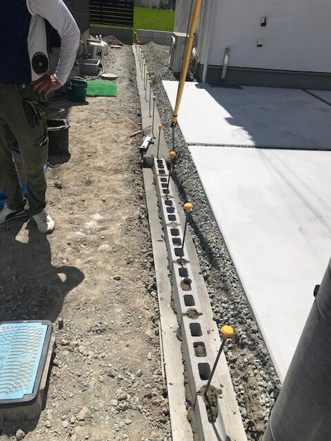 基本ブロック門柱は直線で8段9段は怖くて積めません
