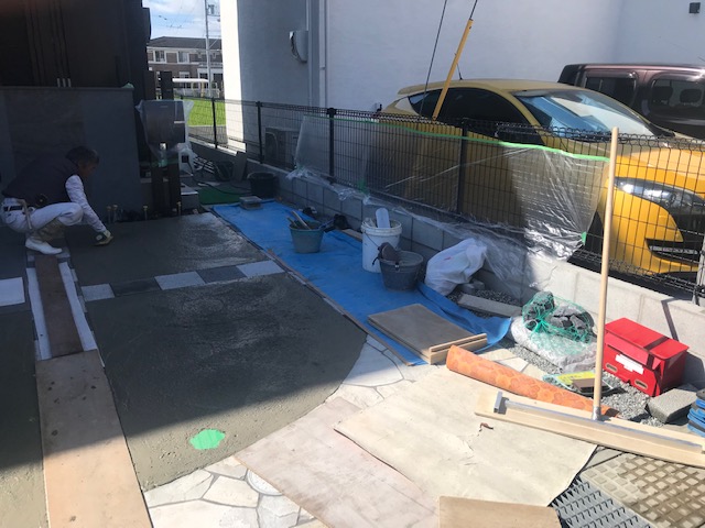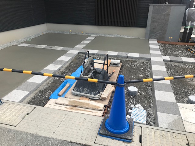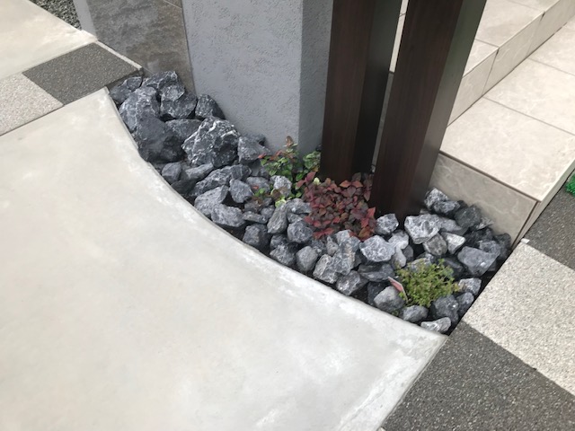 姫路新築外構 石調タイルのポイント門柱 シンプルモダンエクステリア
