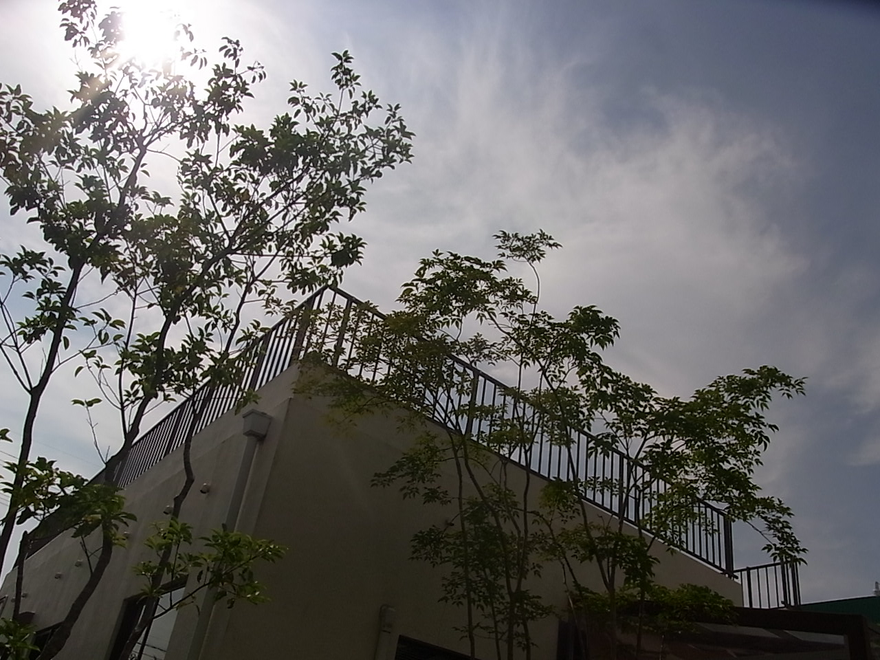 トネリコとソヨゴの葉が木漏れ日を作ってくれます