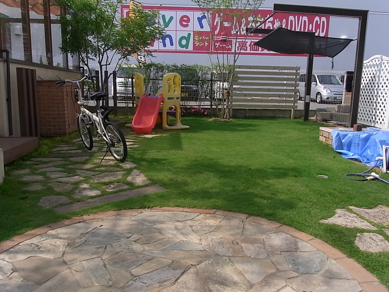 御来店されたお客様から、「どうしていつもこんな芝生が綺麗なんですか?」との質問もしばしば