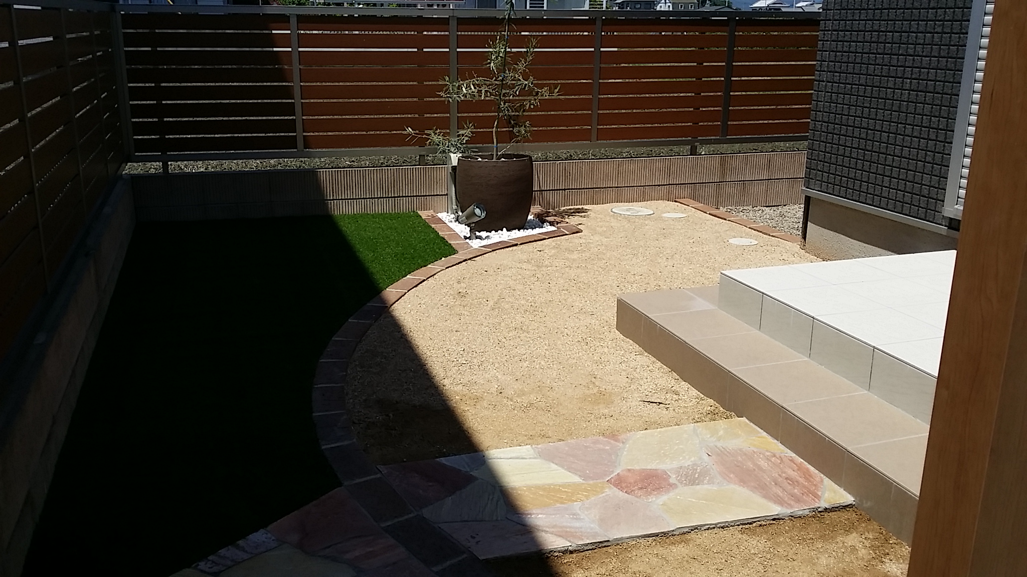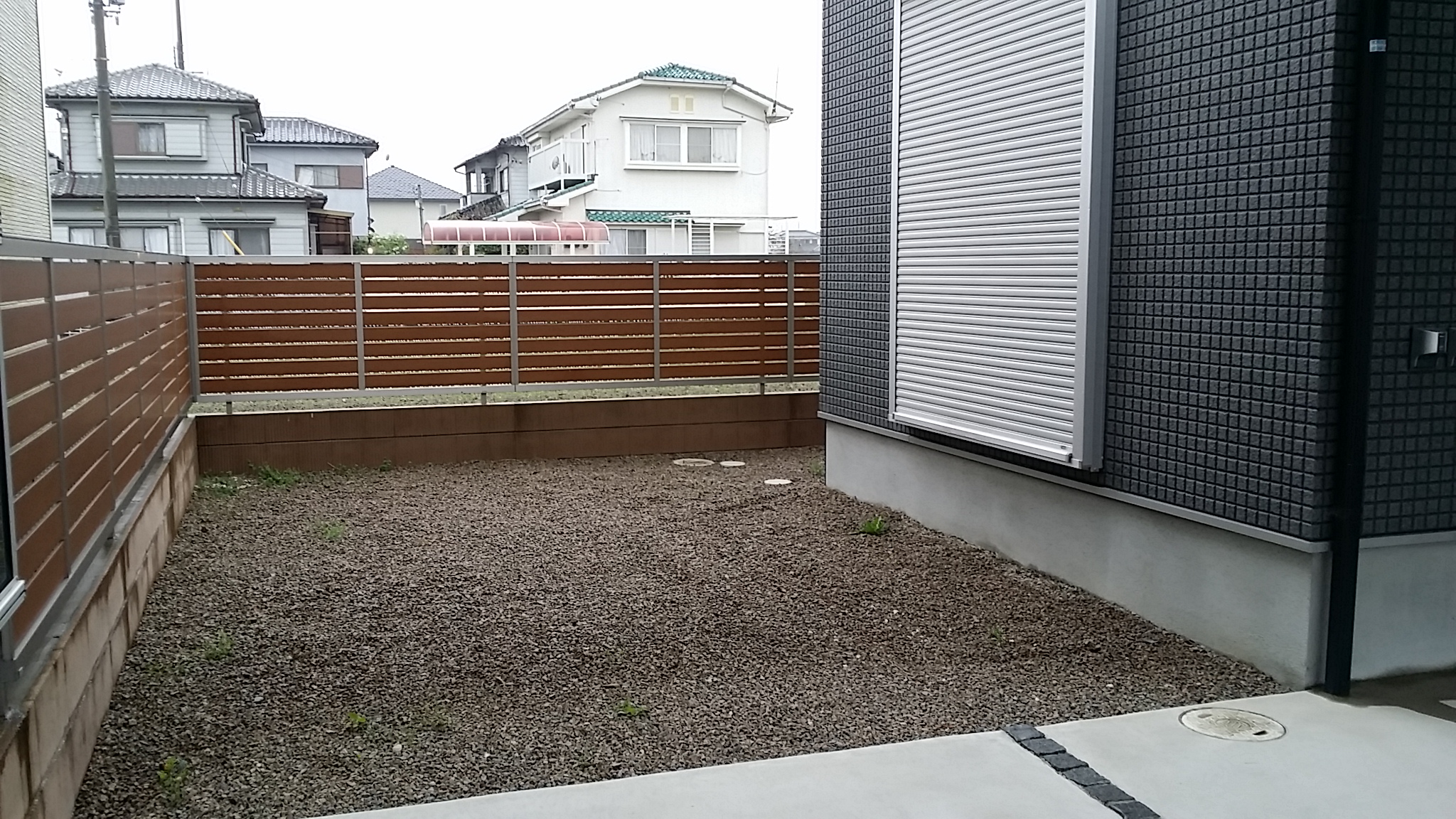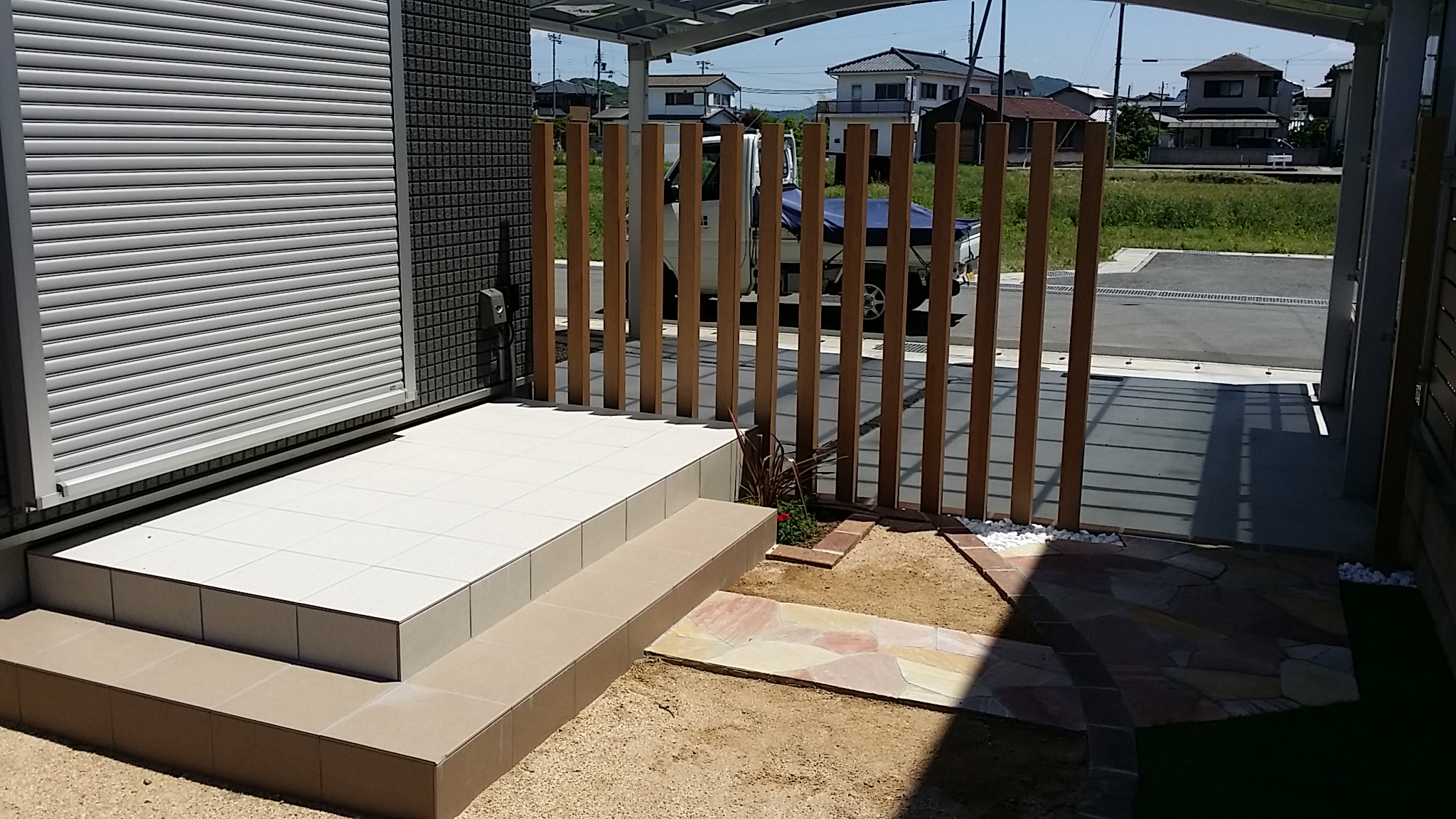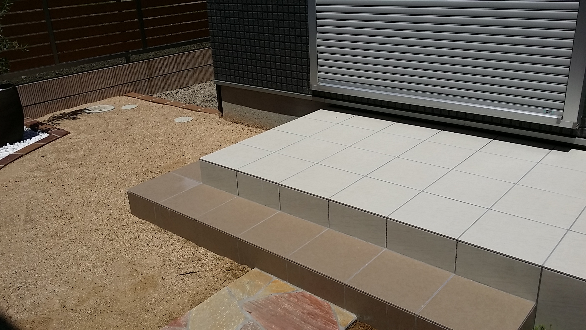 手つかずのお庭を 素敵にガーデンリフォーム 手つかずのスペースをガーデン工事 姫路エクステリアリフォームショップ エクステージ ひがしぐち まずはタイルテラス これ以降はお客様の楽しみ DIYで作られます 姫路のエクステリアリフォームショップ エクステージにお任せください ひがしぐち