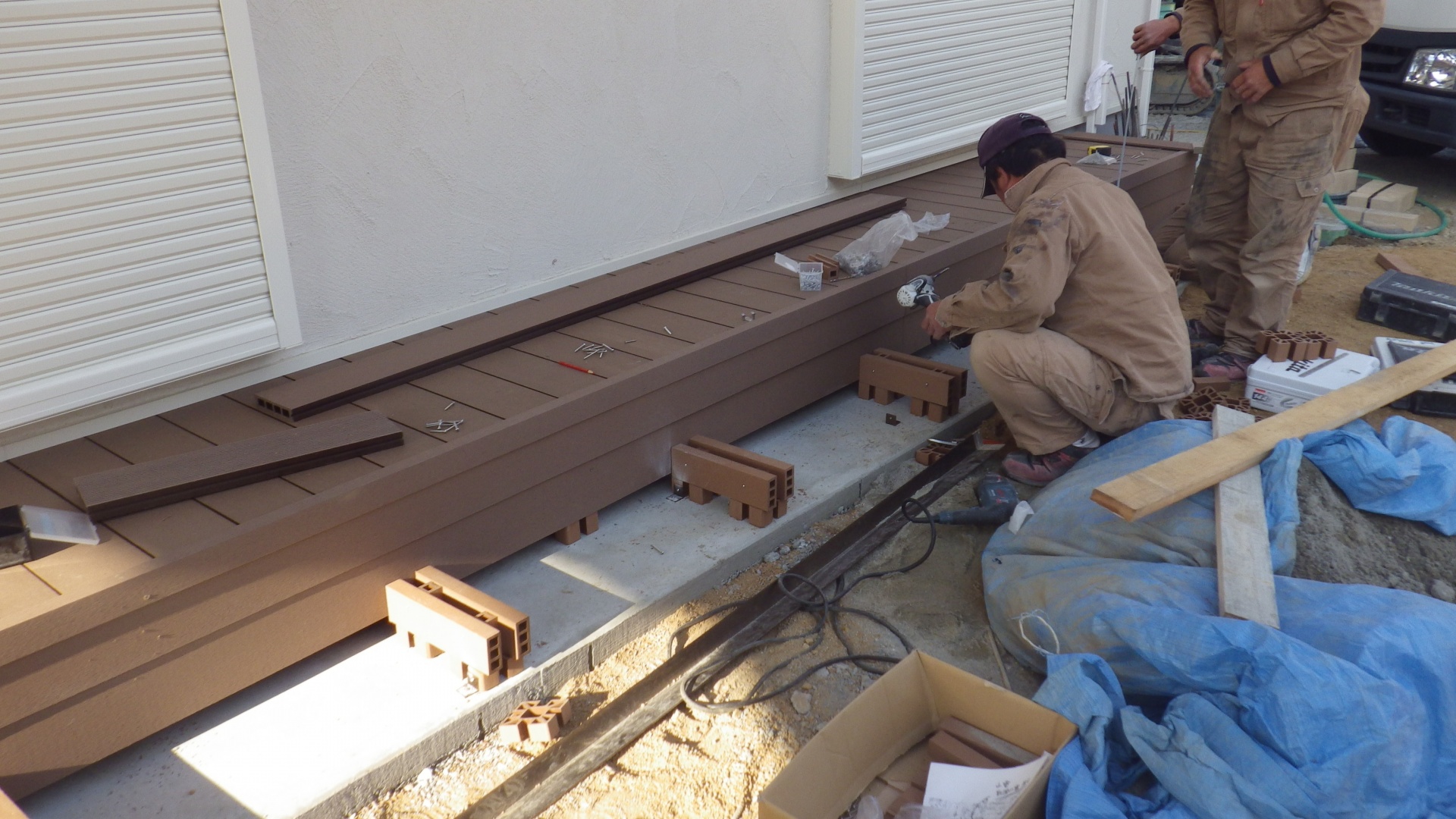 ウッドデッキというより 吐き出し窓をつなぐ濡縁デッキです
