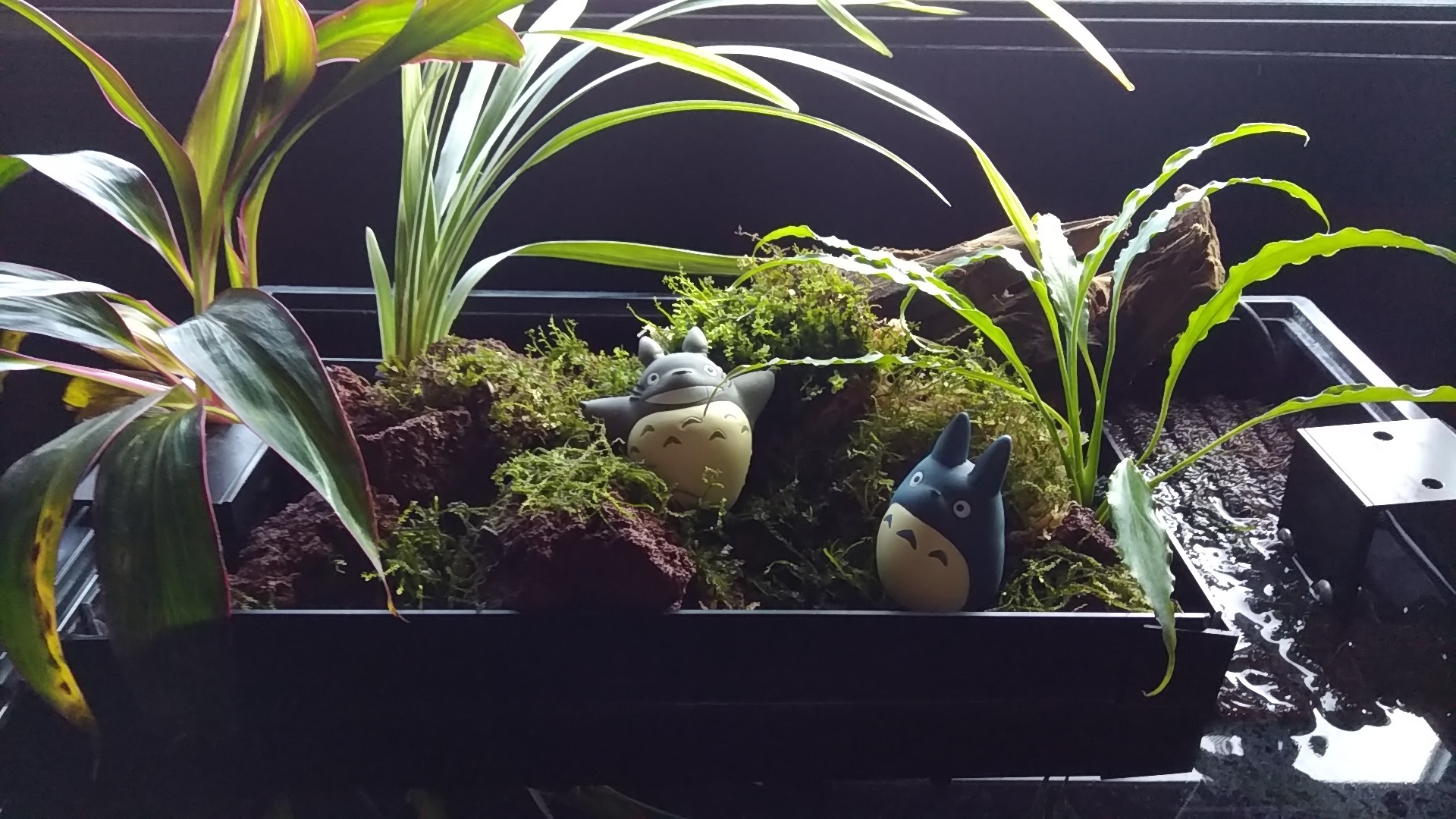 トトロの森??アクアテラリウム挑戦blog 姫路の外構屋さん となりの とっとろ とっとろ♪ ♪歌を歌いながら 今回は加古川のアクアノート タチバナさんでチョウチンゴケ と ウィローモスを購入2つで800円ちょっと気になる点を質問して丁寧にアドバイスいただきホームセンターで ミズゴケを購入 ミズゴケを水でもどしウィローモスを上にひくコケは あまりにも水分があると腐るので流木の上にペタ先週 レイアウトした水上葉はあえてそのまま これから朝日も程よく当たる場所グリーン関係が流木とかに 上手く活着すればもう少し 自然に見えるでしょうとなりのとっとろ♪ また次回(*^^)vひがしぐち たかし