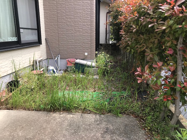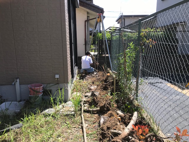 雑草対策 雑草対策工事 植栽処分して 雑草対策 土間コンクリートで完全に雑草からさようならですリフォーム外構は他店さんとは違う1級の各種施工管理技士のリフォーム管理で安心のエクステージにお任せくださいひがしぐち