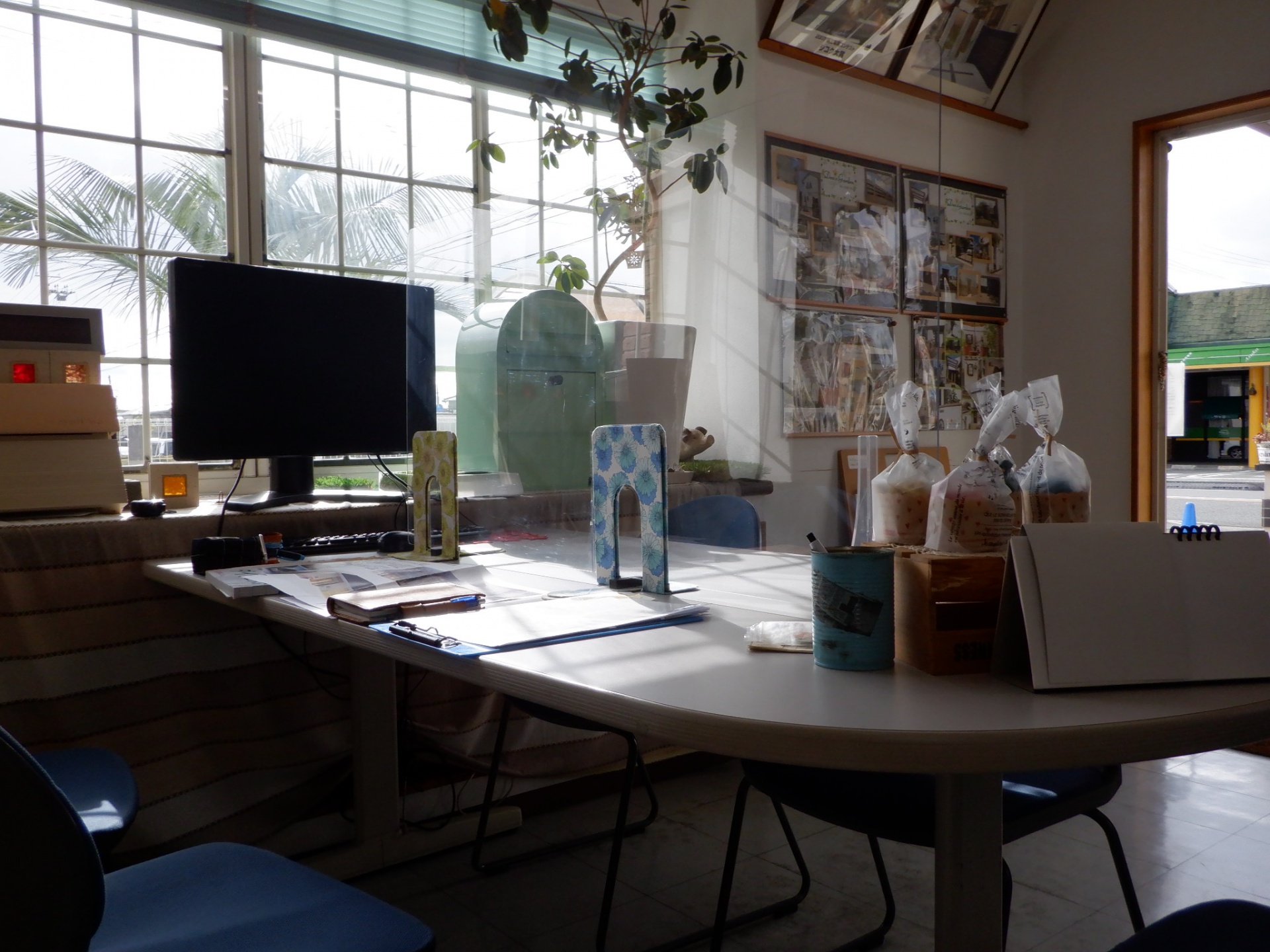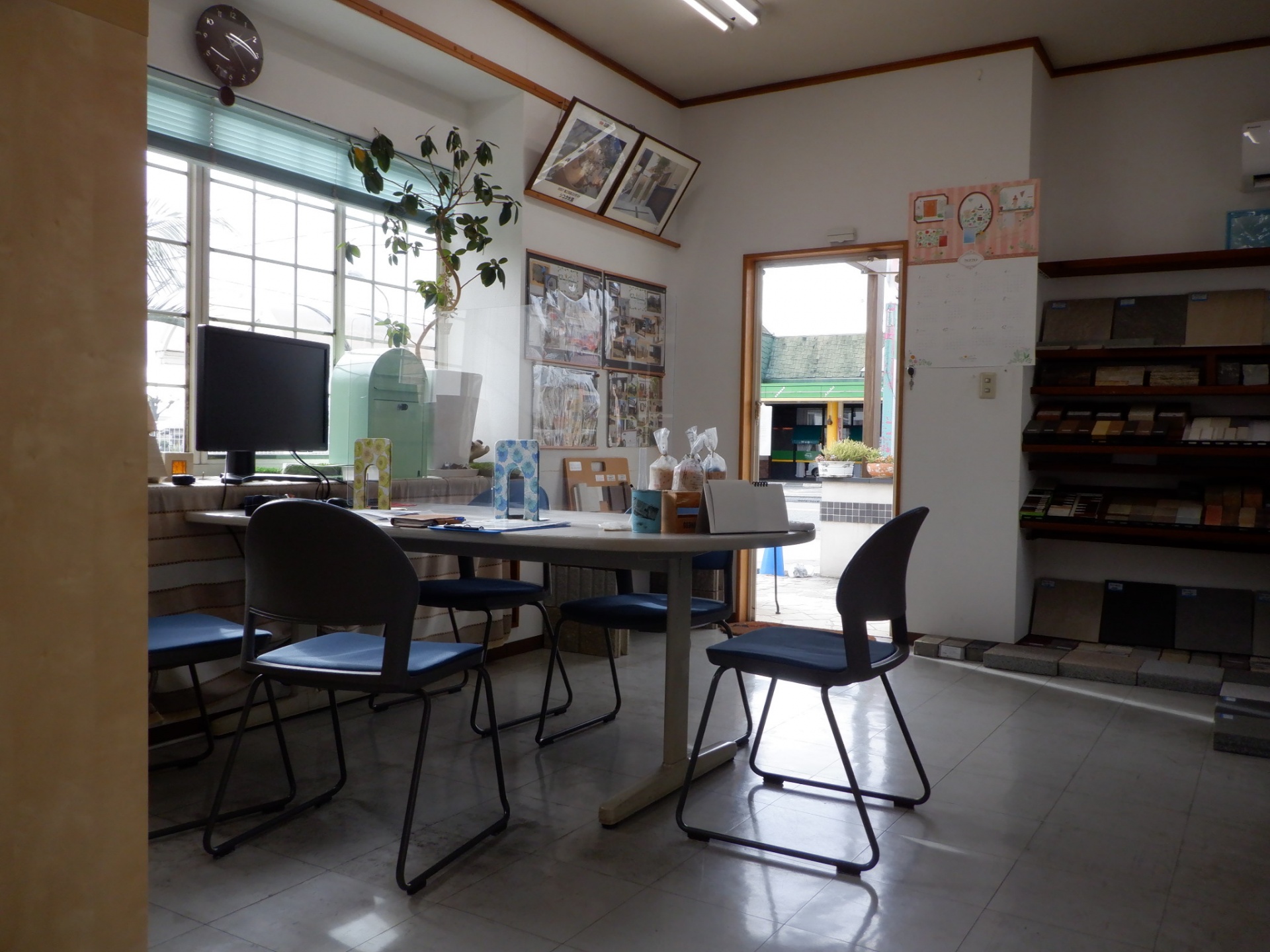打ち合わせデスクも お互い同じ図面を広げることのできる大き目なので距離も安心