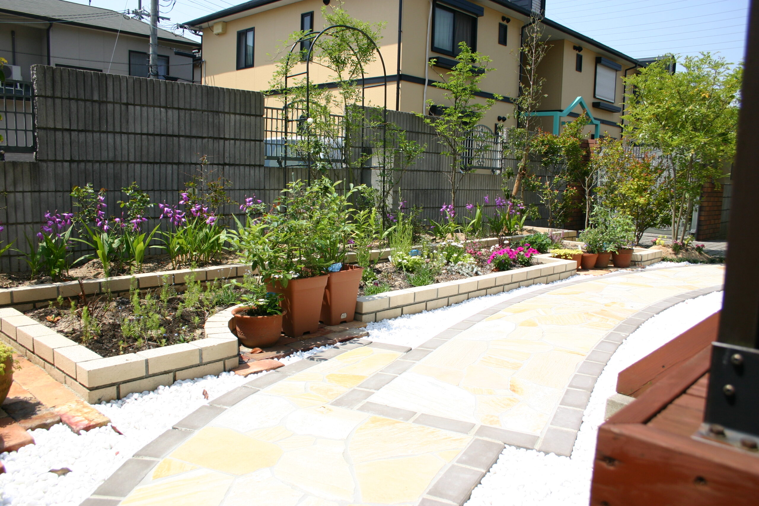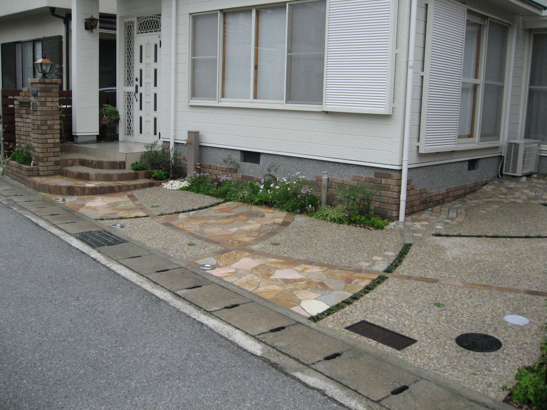 洗い出しと自然石乱張りでグレードアップリフォーム