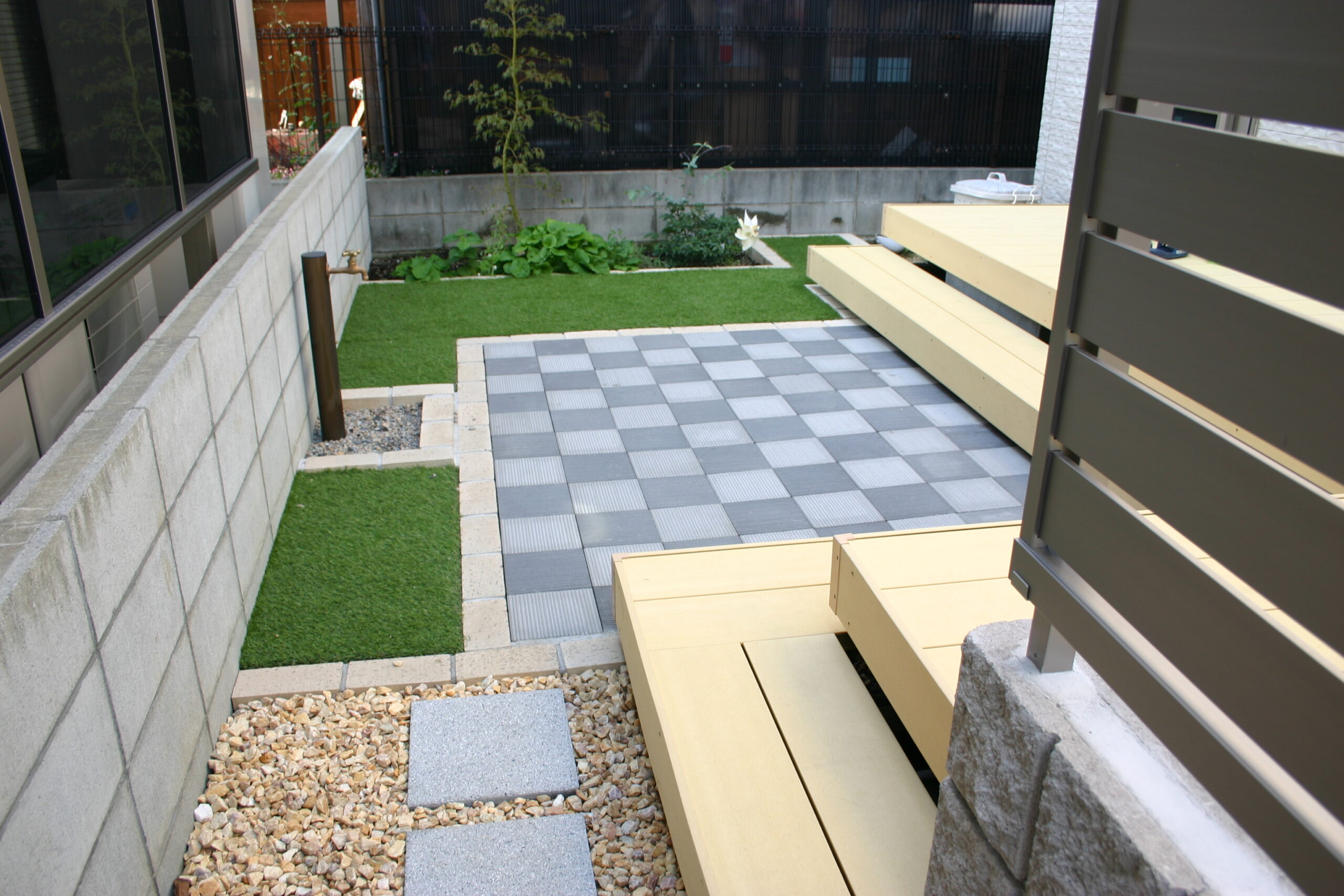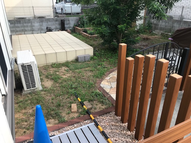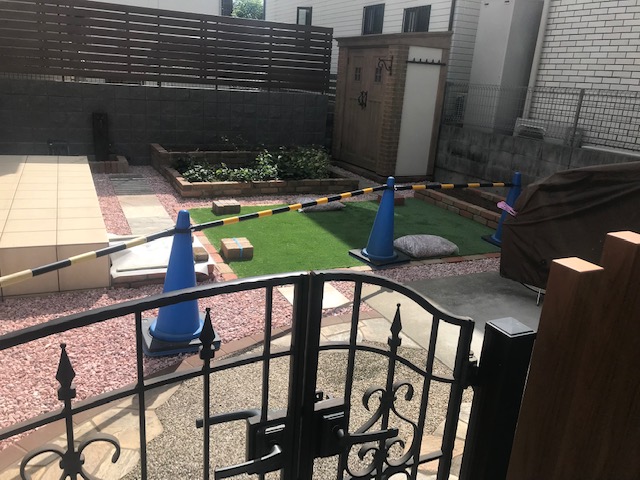 人工芝のメンテナンスの簡単なお庭にリフォームしました