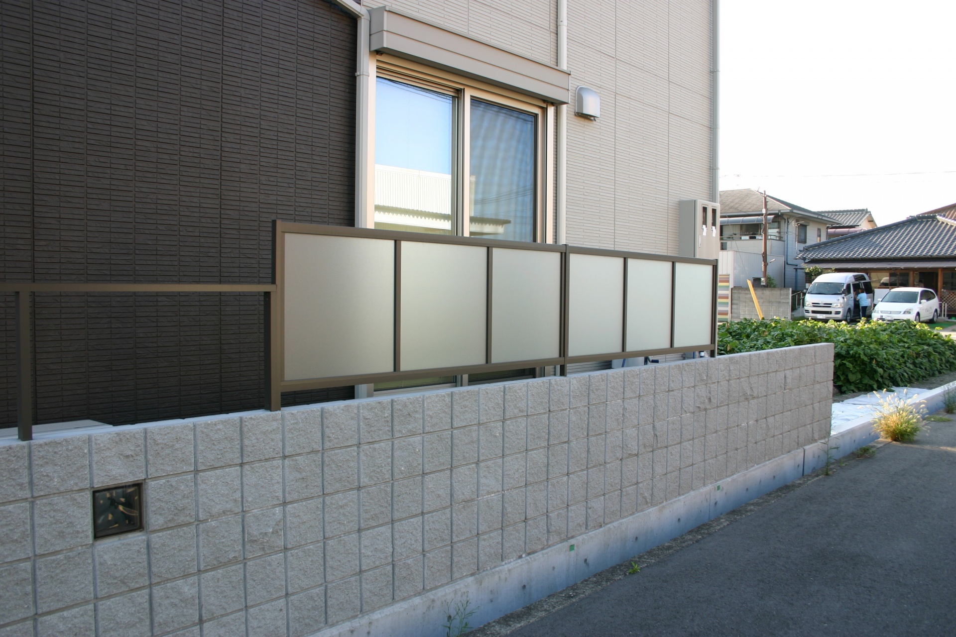 各メーカー商品 シャレオR P型フェンス TOEX TOEX シャレオR P型フェンス H=800 クリアマットのポリカ板で目線をカット アルミフェンスと違い光を取り入れることができます 施工例はこちら