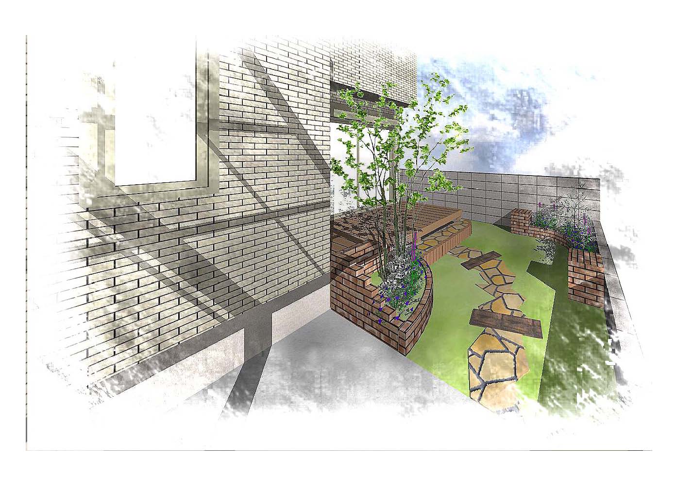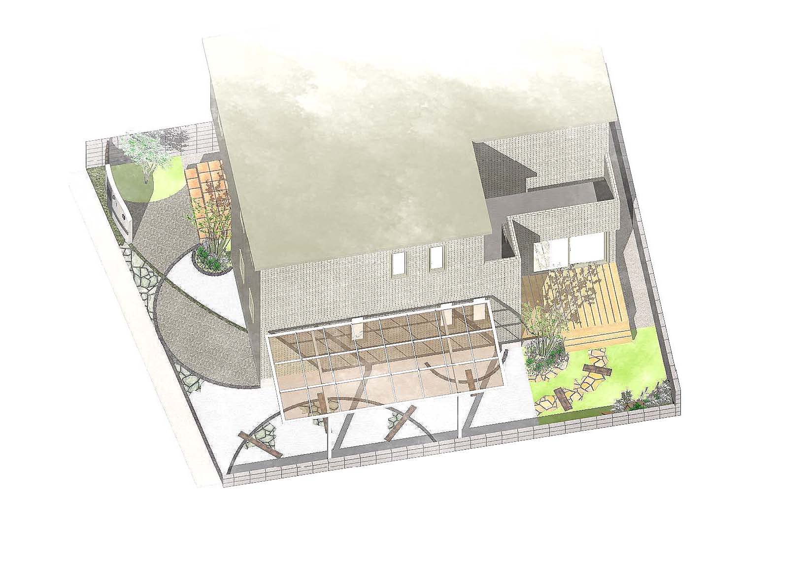 落ち着いた感じの建物にパーキングスペースを遊び心を取り入れデザインしました。