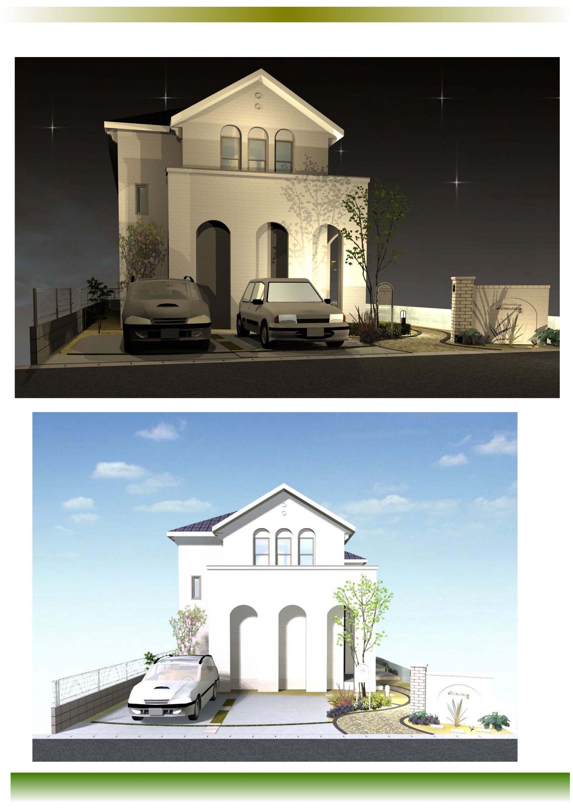 上品なホワイトの壁にRニッチ加工の門柱でデザインしました。