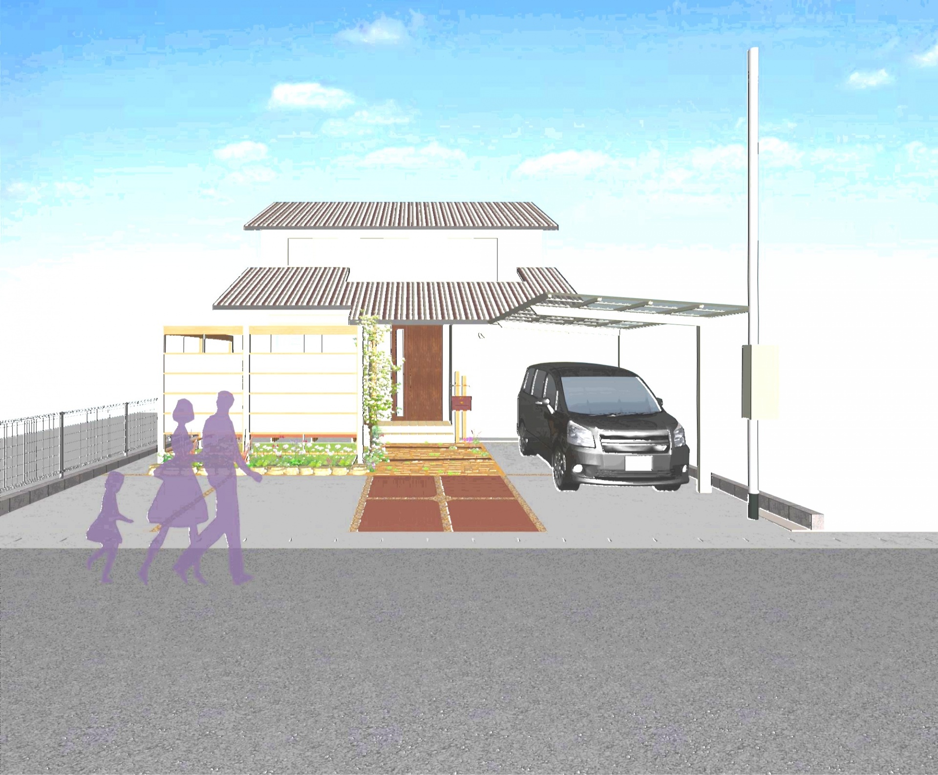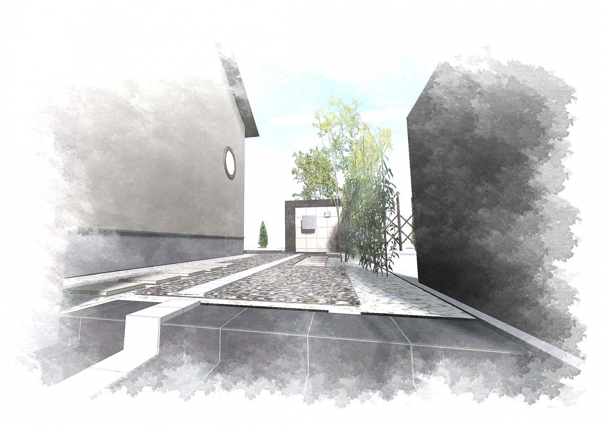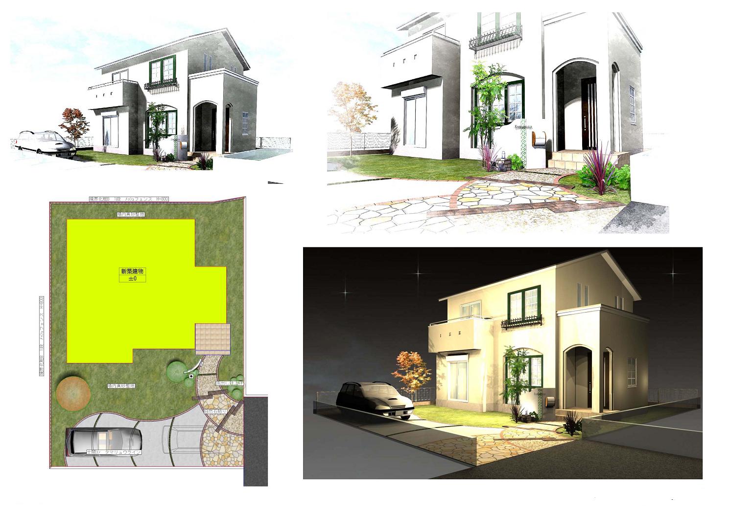 エクステリアデザインのナチュラルテイストあふれるデザインパース。
