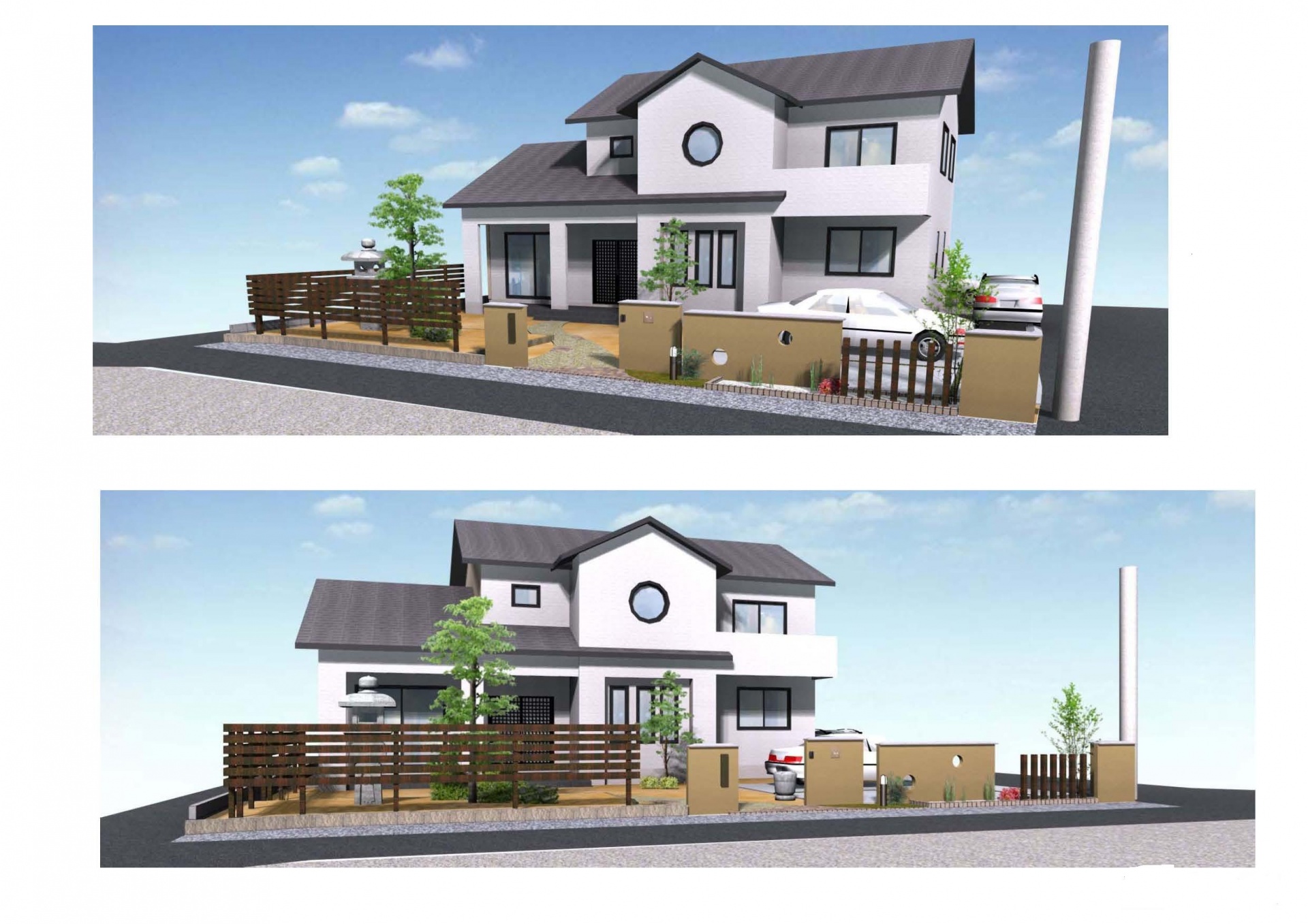 ホワイトの外壁にイブシ瓦の門塀をデザインしたイメージパースです。