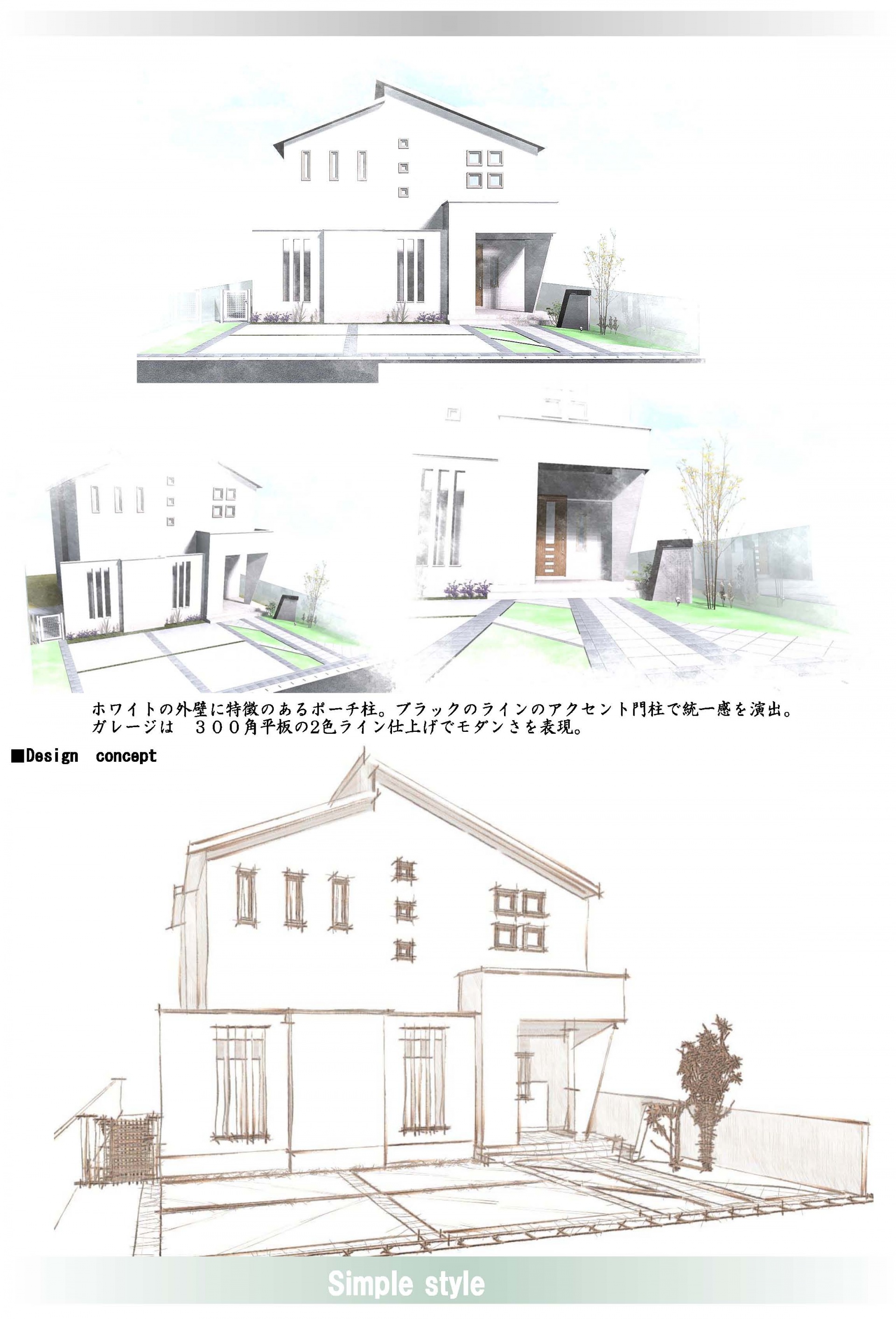 シンプルモダン門柱に2色の台形門柱をデザインしました。