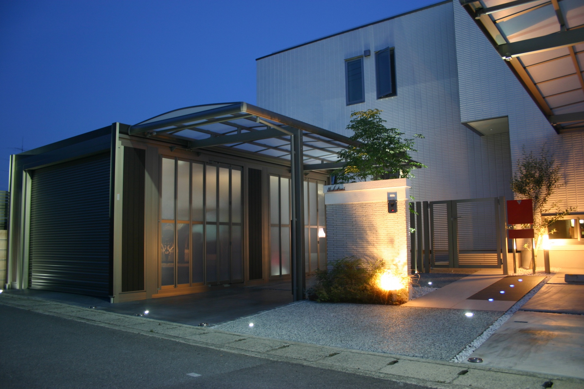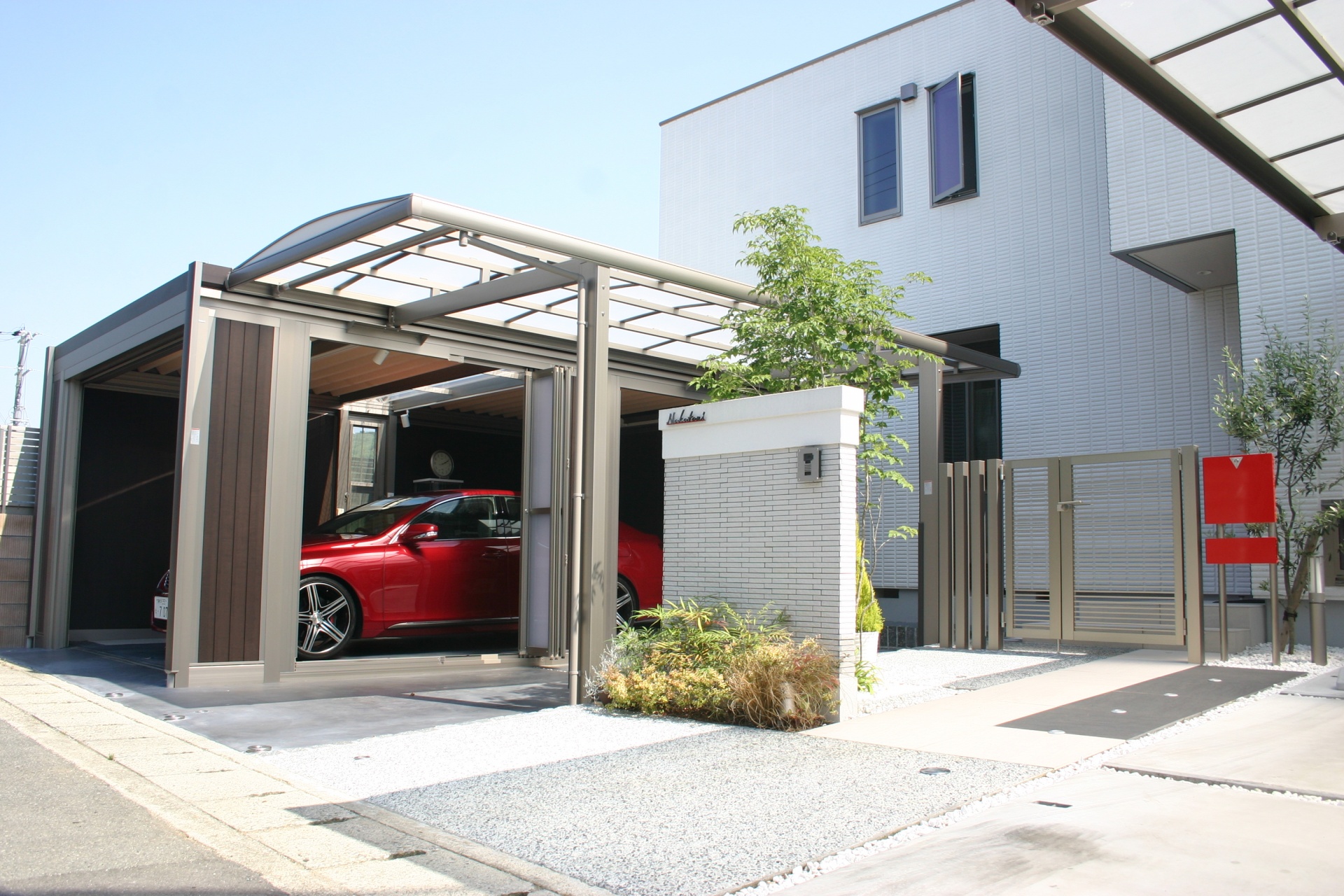 新着情報 姫路市N様邸スタイルコート完成写真 2017年5月22日(MON)建築前の既存境界ブロック解体・新設工事からお世話になっています姫路市N様邸三期に渡っての外構工事も終わり、シンボルツリーのアオダモが綺麗に新芽をつけた時期を狙って完成の写真を撮らせていただきました スタイルコートやカーポートなどハードなアルミ材が多いのですが門回りに緑を取り入れることですっきりと爽やかな印象になります 今回は「赤」がポイントになっておりどの角度から見ても飽きのこないデザインとなっています 夜になると土間に埋め込んでいますLEDライトが灯ります スタイルコート内は音楽が流れN様の特別な空間となっています