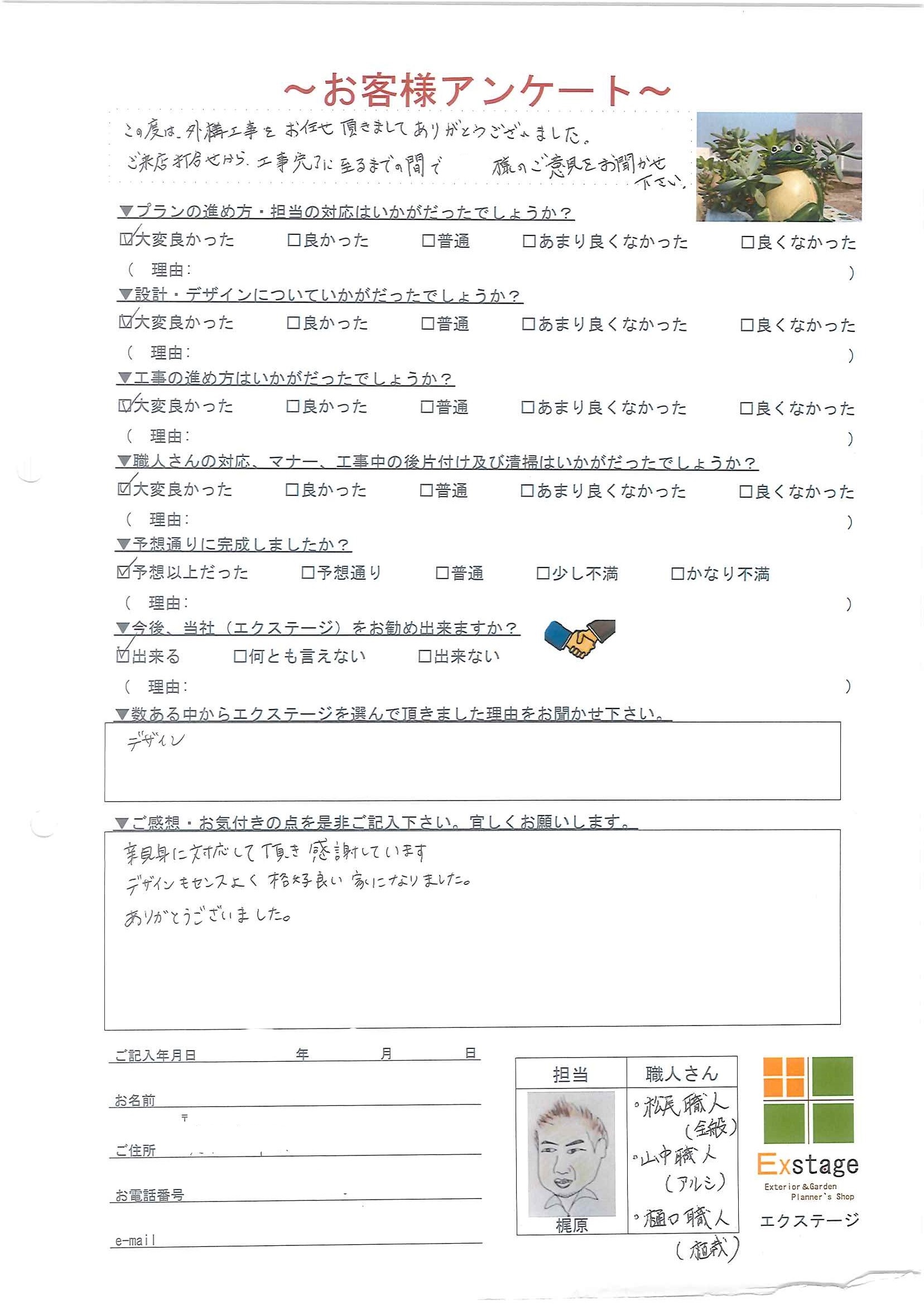 ディーズガーデンからこちらの会社を知り梶原さんのフェンス扉がとても素敵だったのでエクステージさんを選ばせて頂きました。