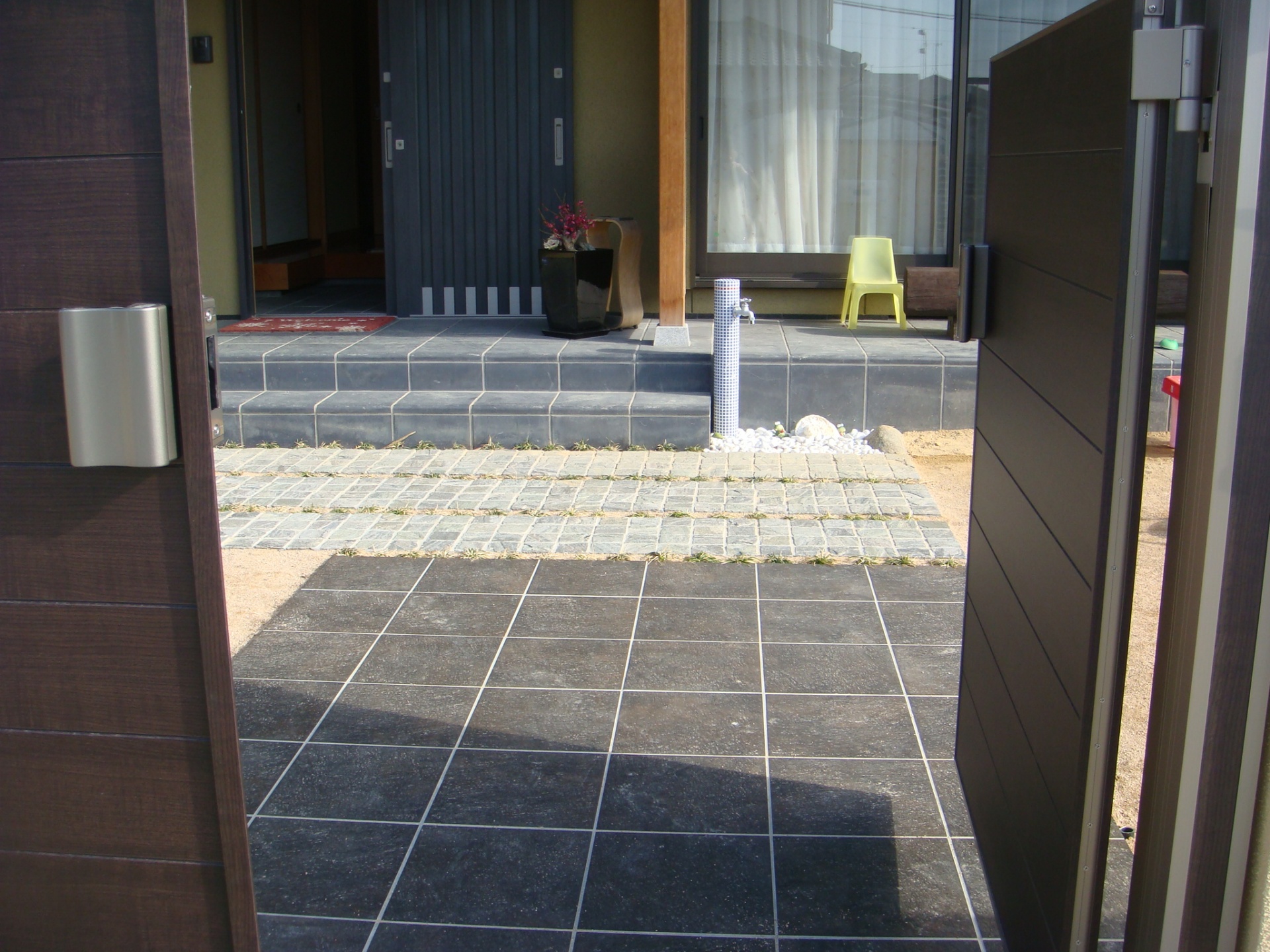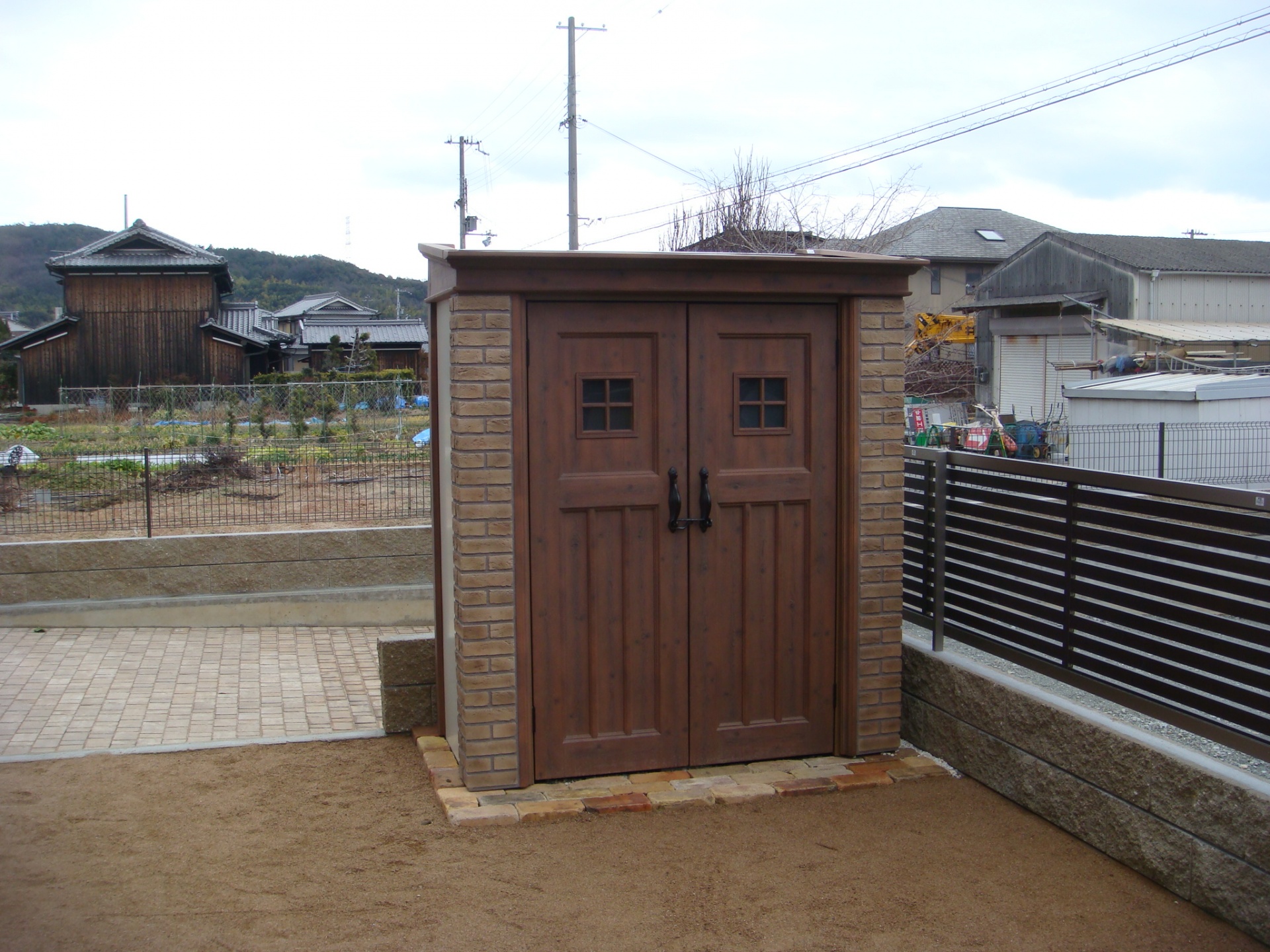 スタイル別施工実績 モダン和風とカンナ物置 姫路市H様邸 和風な建物に合わせ過ぎず、モダンな要素も取り込んだ門周りの姫路市H様邸。 高低差があり土留めブロックにはサビミカゲ色の化粧ブロック。 和の雰囲気のあるこげ茶の門扉、フェンスで建物との調和をしました。 奥様が可愛い要素もご希望されていましたので、プライベートの庭部分には ディーズガーデン:カンナ物置を置くことで、今後のお庭作りが楽しみになります。 before フェンスより少し顔をのぞかすカンナ物置。 洋風なイメージがありますが、 色目をベージュすることで外から見ても違和感のない仕上がりとなっています。 . 自然石の1枚もの笠木を使用した存在感のある門柱。 デザインポスト、タイルラインでどこか可愛さがあります。 門扉を開けてからのアプローチ。 タイルから自然石へと変わり広がりを持たせています 今後の庭作りが楽しみになるカンナ物置。 わくわくします。