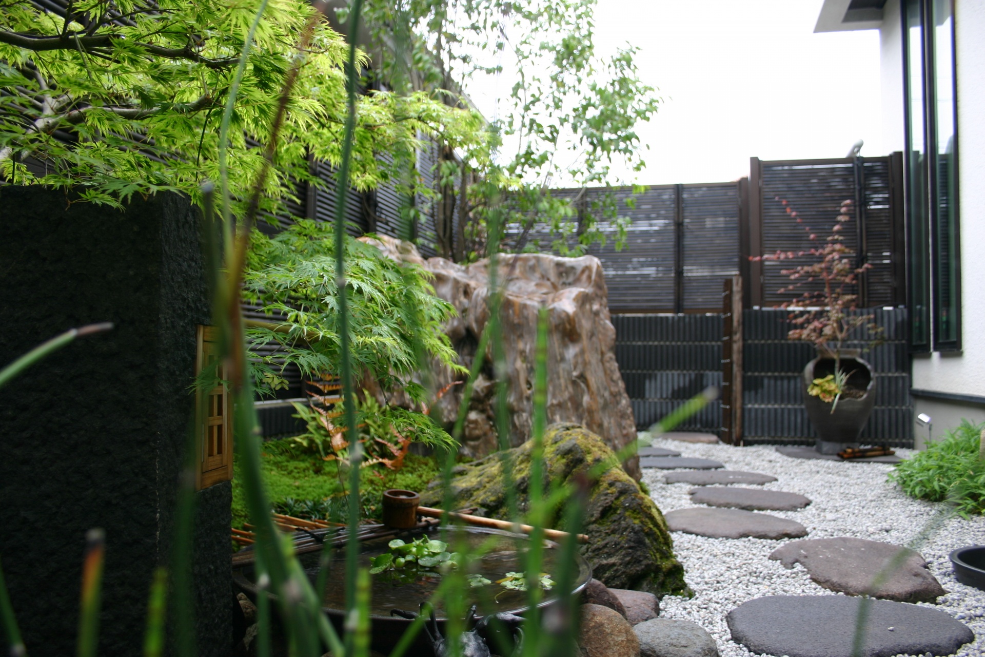 スタイル別施工実績 モダン和風の坪庭 夜も楽しめる坪庭をご希望だった姫路市O様邸。 しっとりと落ち着いた大人の空間になるよう、植木の樹形や石にもこだわりました。 水盤の上のシダレモミジ、存在感のある「木化石」。 水面に映る灯篭の光とシダレモミジ、浮かぶ浮草。 筧から水盤に流れ落ちる水音に心が落ち着きます。 before after Night View 和室からの眺め シダレモミジの枝ぶりと鳥海石についたコケが美しい 水盤に足をかける骨董品のカニ