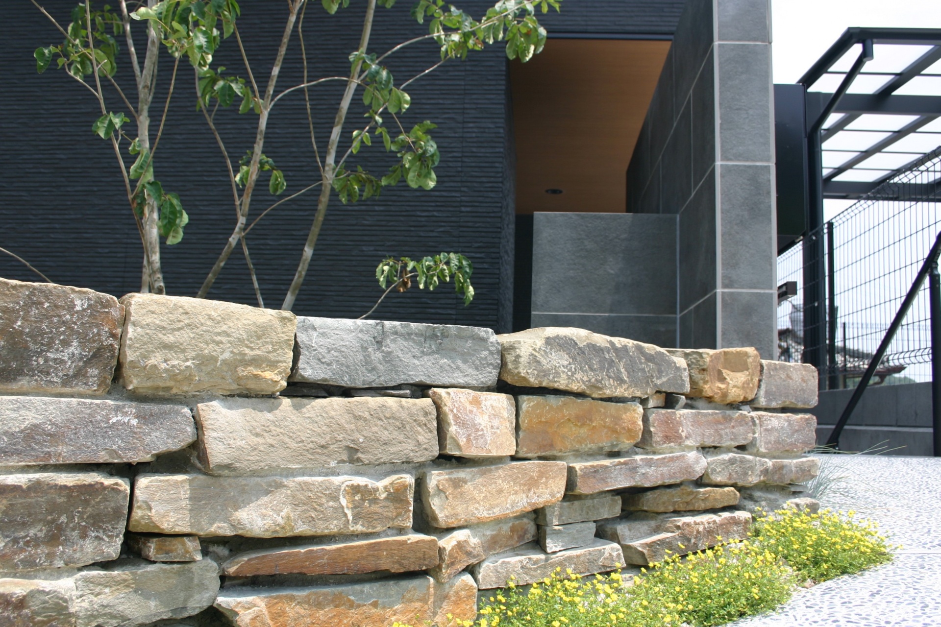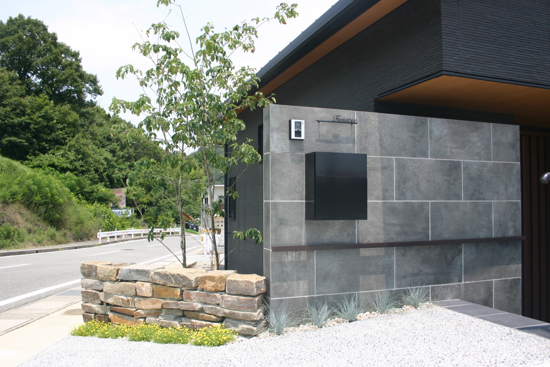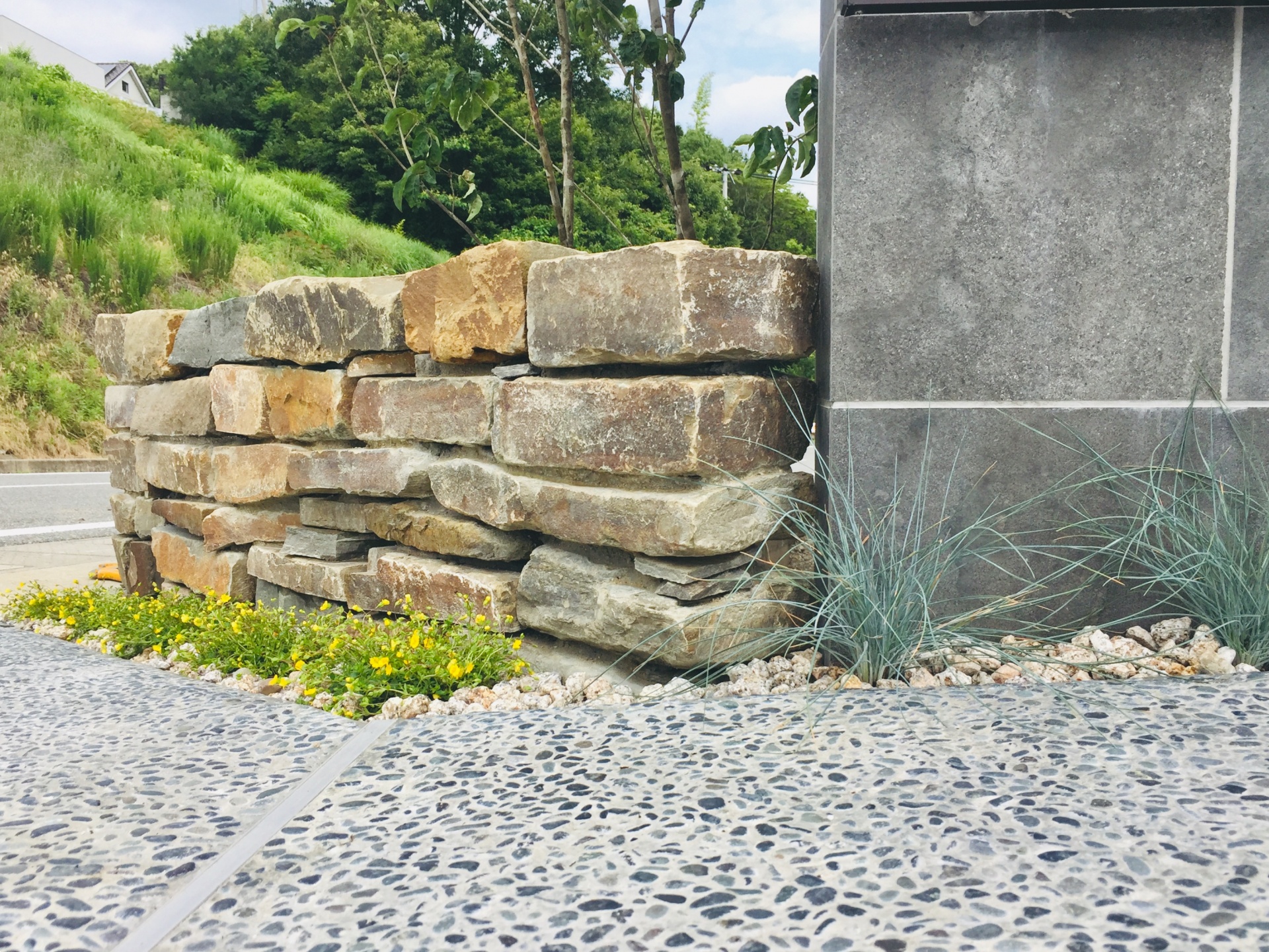姫路市新築外構 石積みとアオダモ|タイル門柱でナチュラルモダン外構