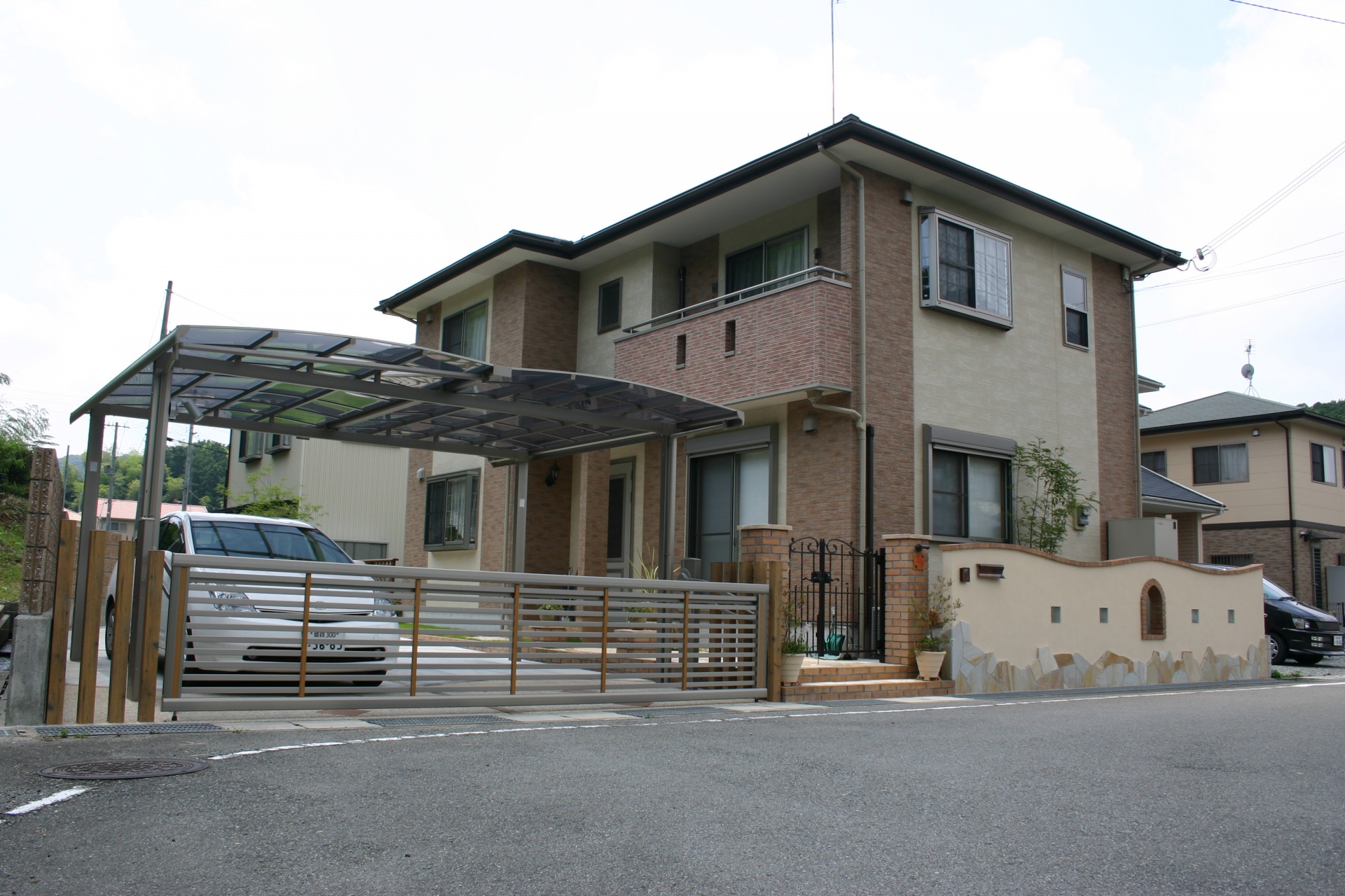 姫路市新築外構 雨降りも安心 駐車幅3台分のフラットデザインカーポート