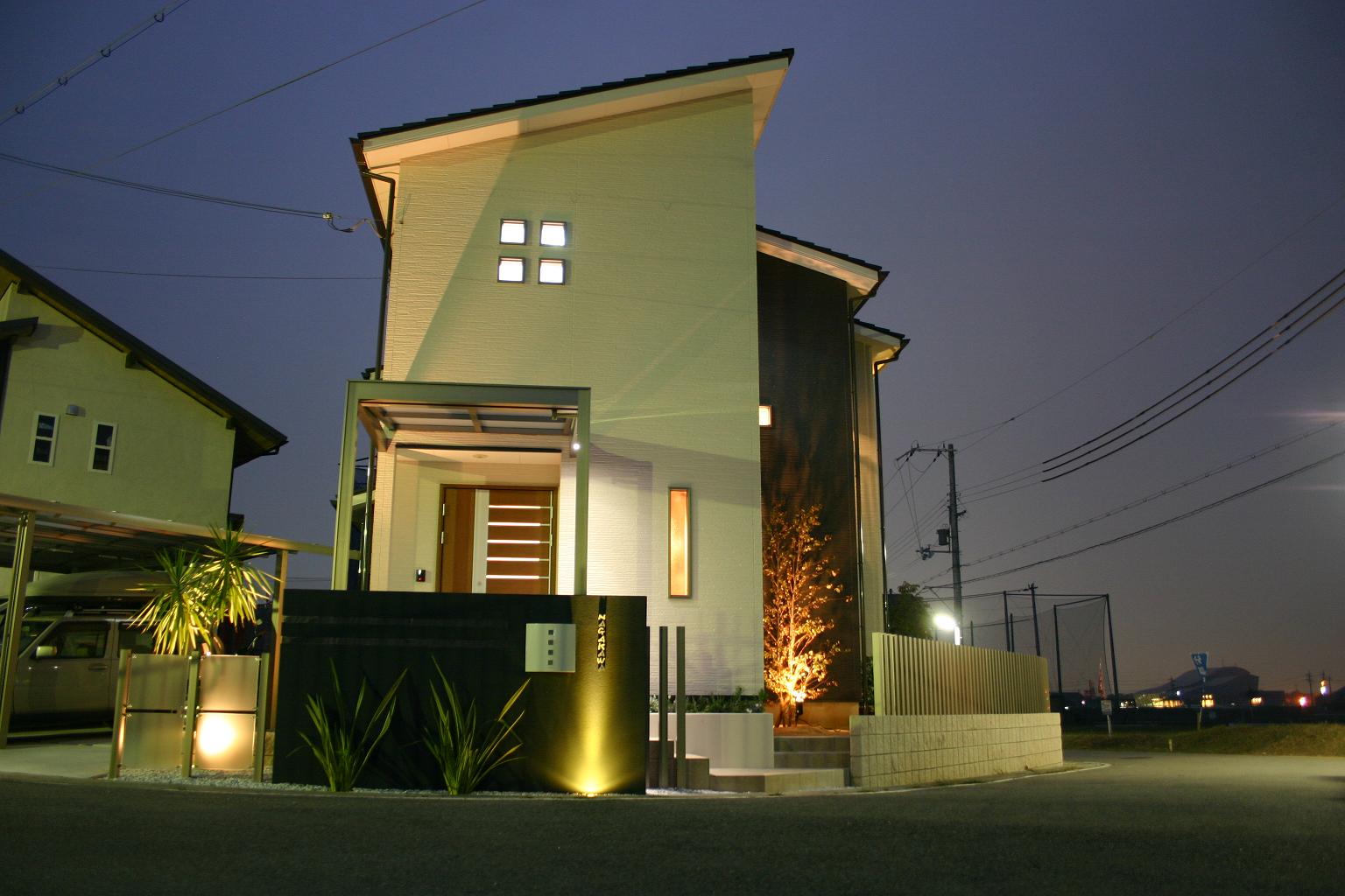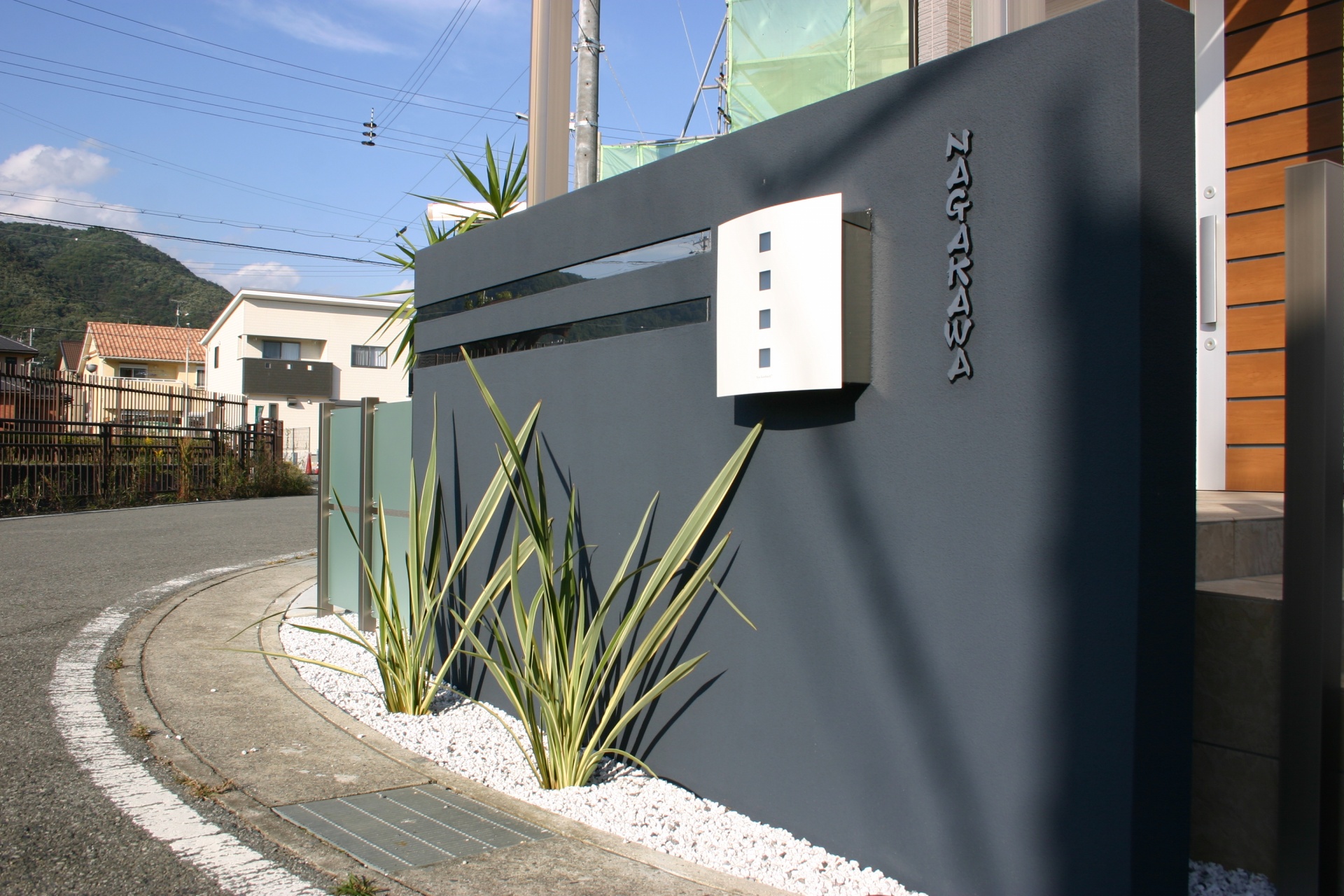 施工実績 ブラックウォールにステンの鏡面ライン たつの市エクステリア ブラックと基調としたシンプルモダンテイストのエクステリア外構デザイン。玄関前のリクシルプラスGが実用的かつデザイン性に上手く取り入れました。 ポリカパネルのバックには植栽のグリーンで演出。 ポイントのステンレス鏡面仕上げのデザインライン。 ライトアップ。