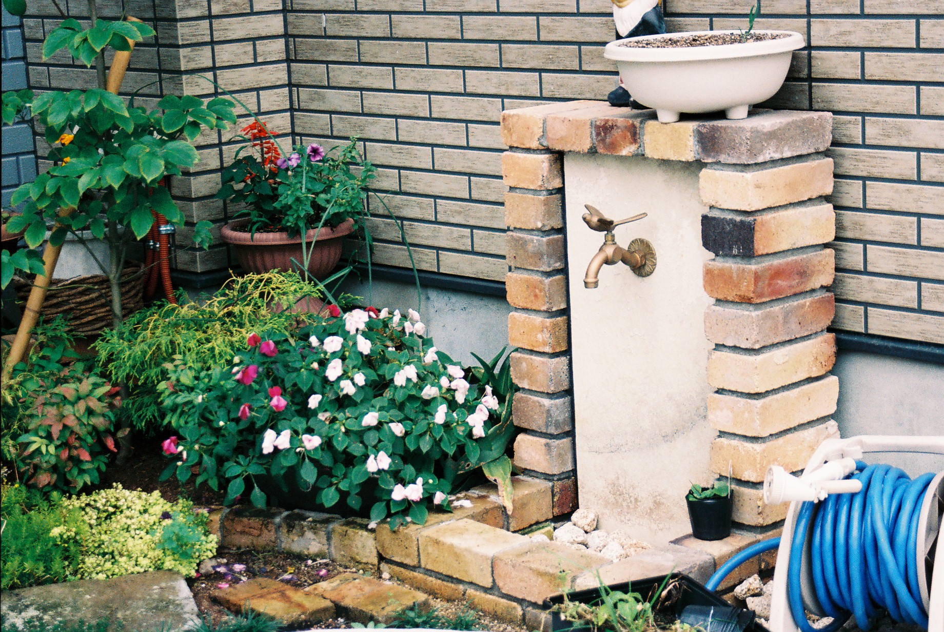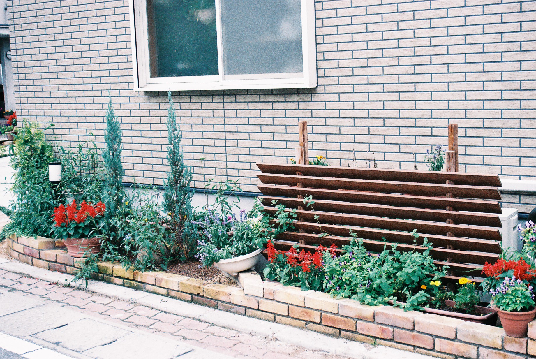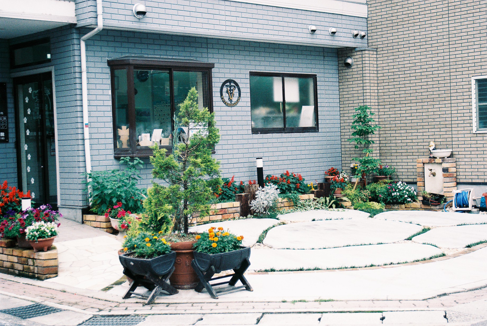 施工実績 オリジナルパーキングデザイン たつの市の動物病院様のパーキングガーデン工事です。アールを多く使った面白いデザインに仕上がりました。土間の合間の植栽たちがグレーのコンクリートを和らげてくれます。 道路面をコニファーガーデンに。 室外機は特製のるルーバーフェンスにて目隠し。