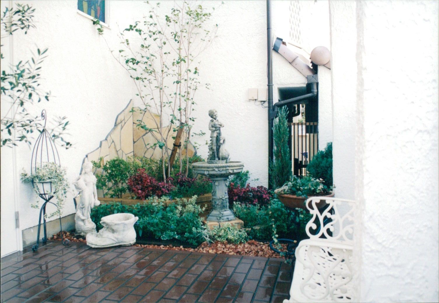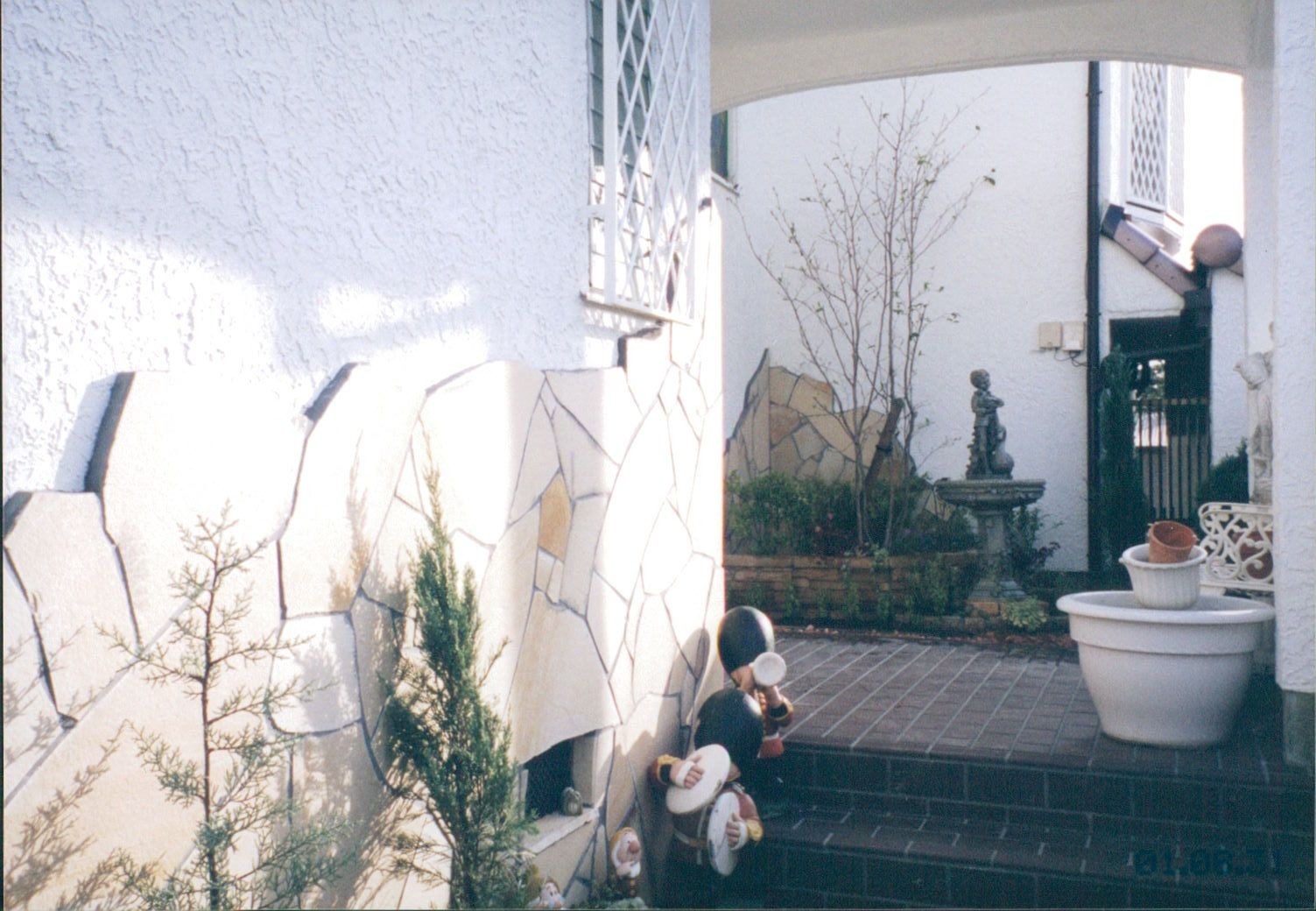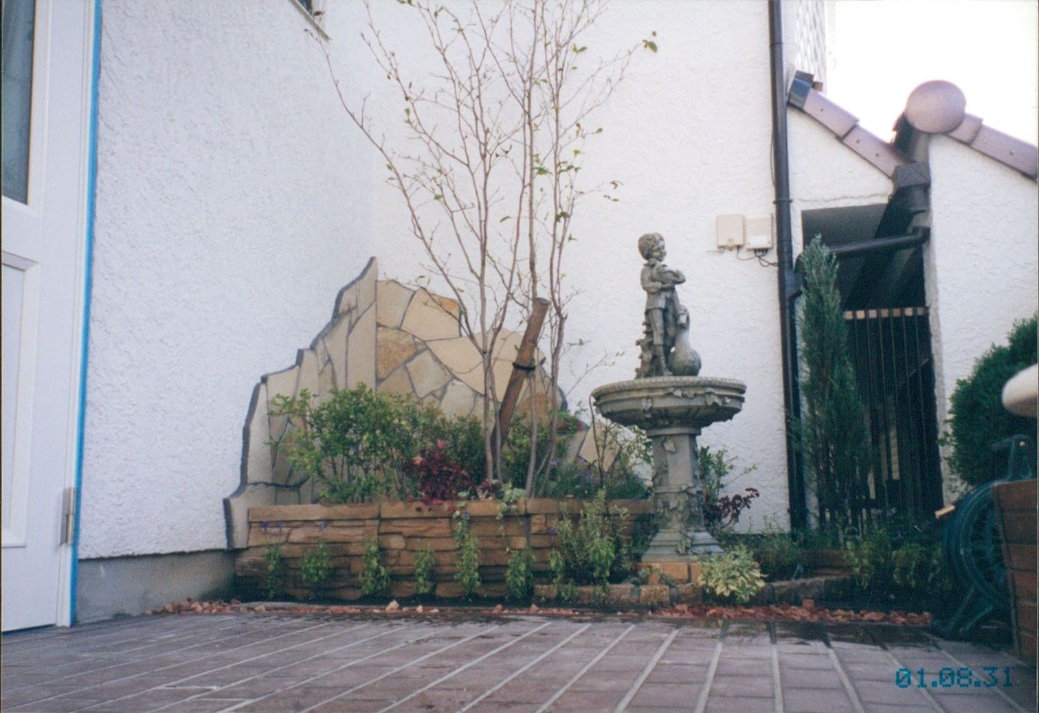 施工実績 玄関前ポイントガーデン 神戸市K様邸ガーデン工事です。 壁面に自然石をポイント貼りプラスヤマボウシのグリーンでお客様をお出迎えしてくれます。 ウオータースタンドが水の音を静かに楽しませてくれます。
