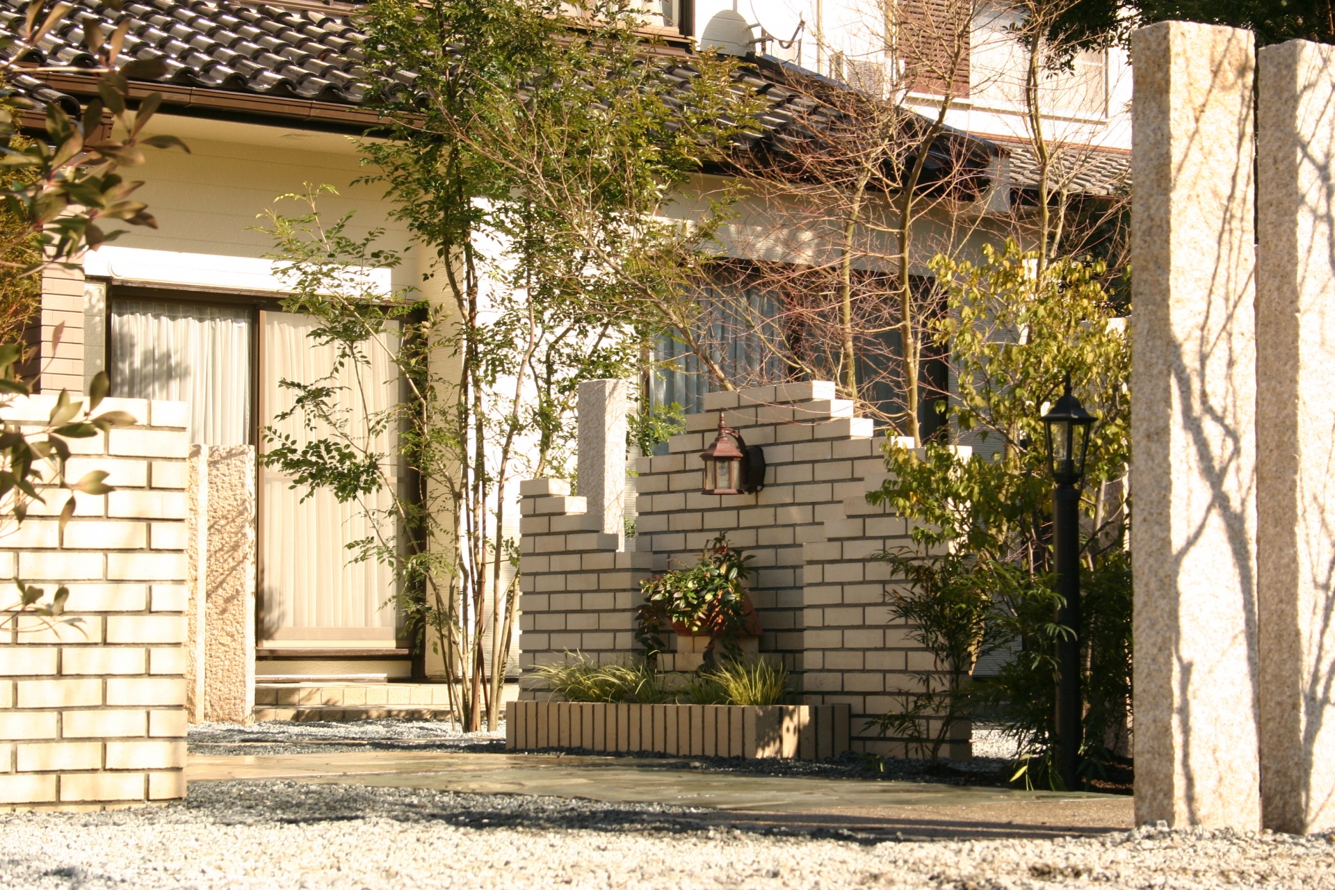 施工実績 ホワイトウォールのガーデンデザイン 姫路新築外構 ホワイトウォールのアイストップデザイン門柱エクステリアです。錆の自然石のスリットが植栽の緑とよく合います。 オリジナルのサークルベンチ。家族の憩いの場となります。 モミジの新緑が毎年楽しませてくれます。