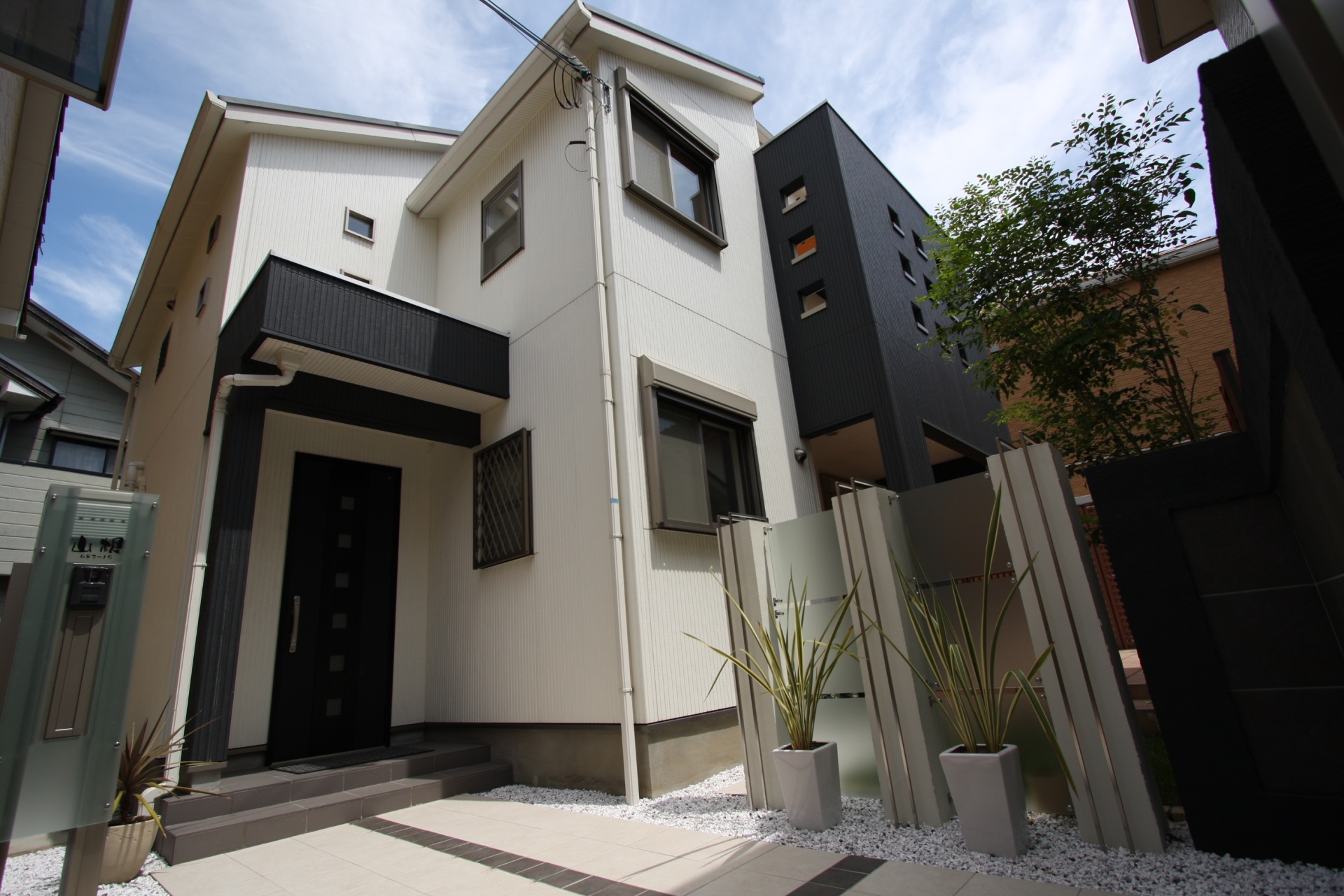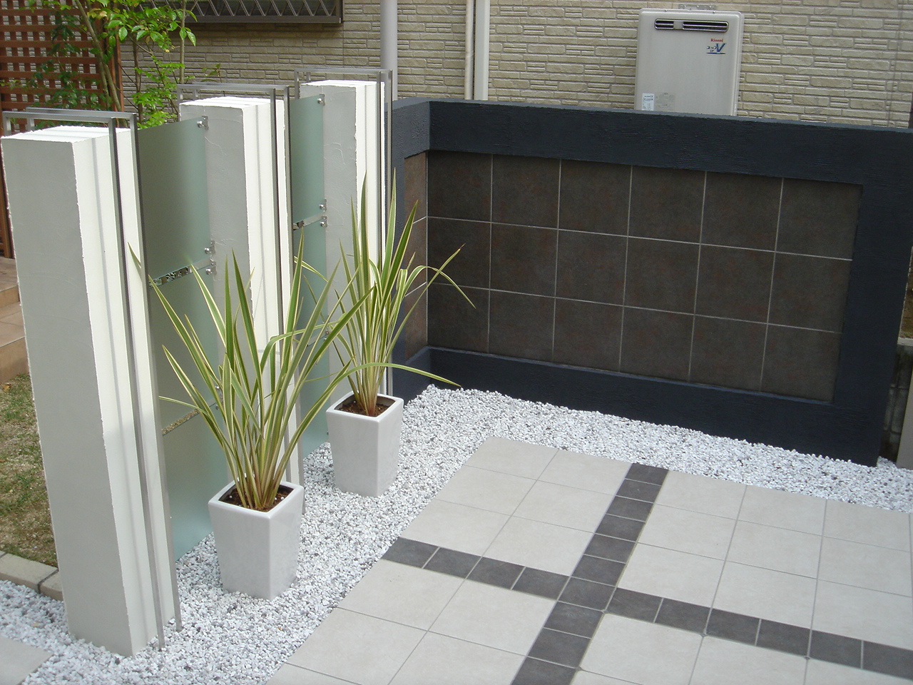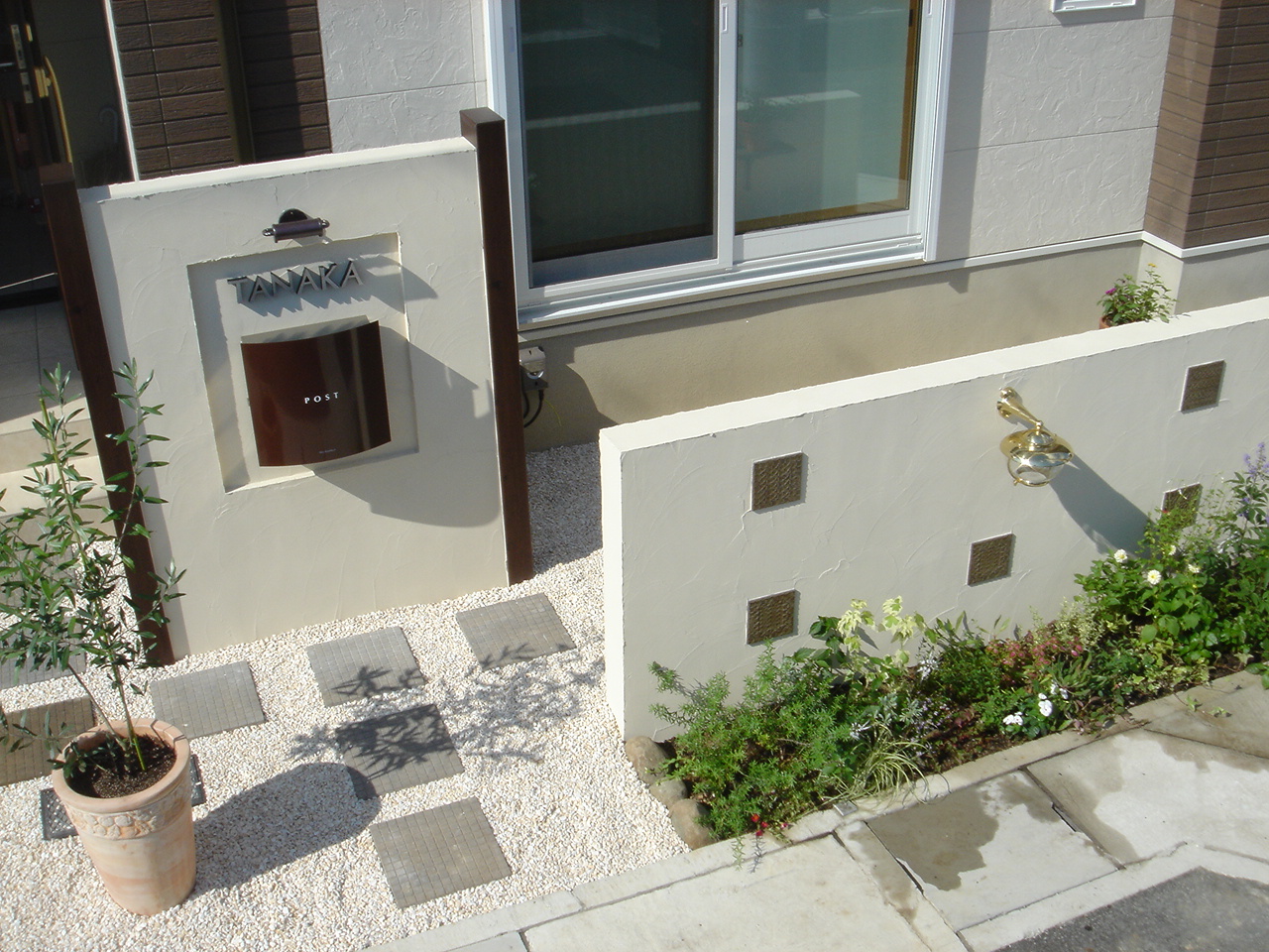 施工実績 ポリカパネルの光の演出 姫路新築外構 ホワイトの角柱にステンの角バーをポイントにデザインした新築エクステリアです。 ポリカ板のバックにセットされたスポットがやさしく夜のライトアップを演出してくれます。 ツートンのシンプルモダンスタイル