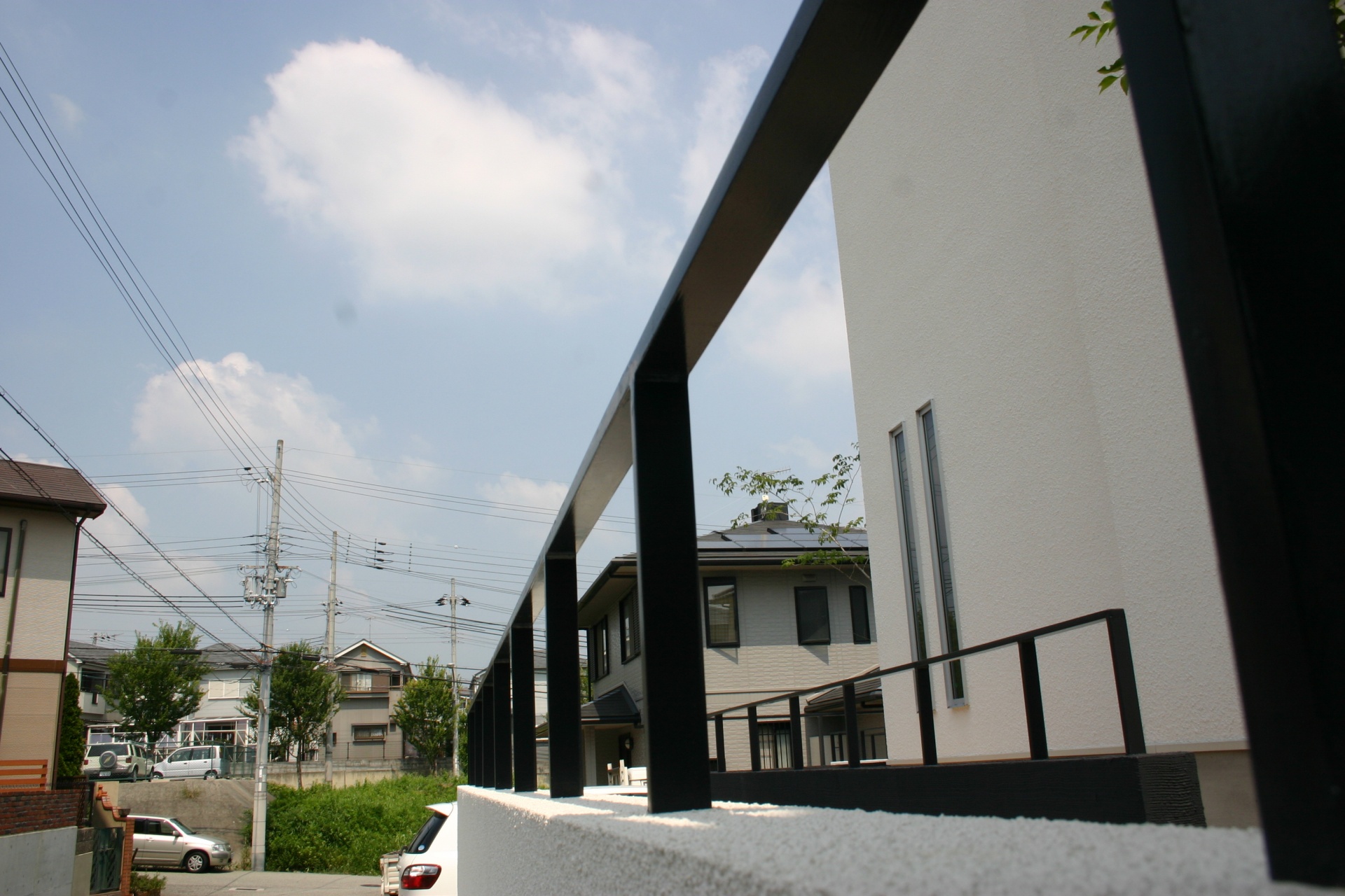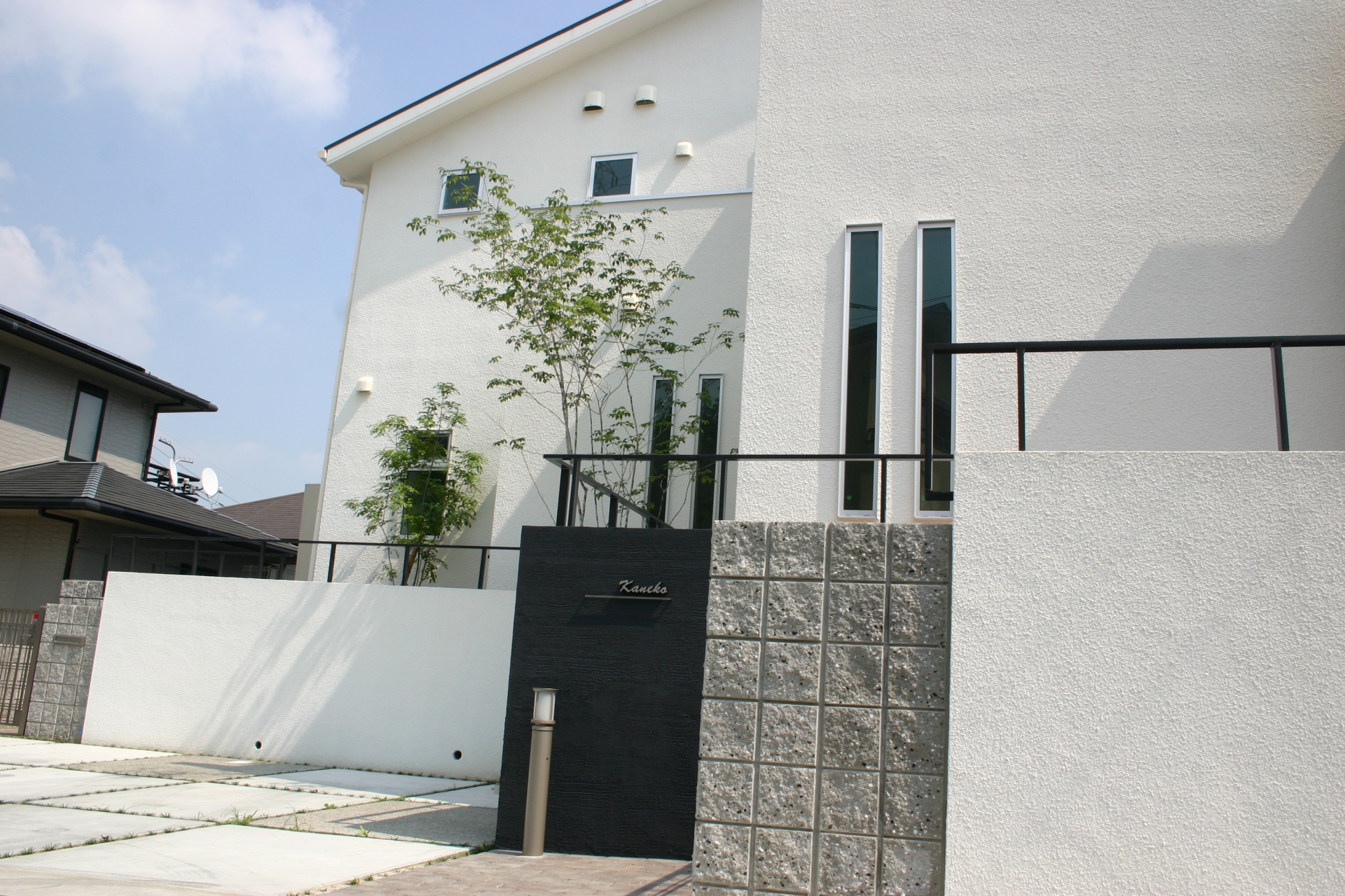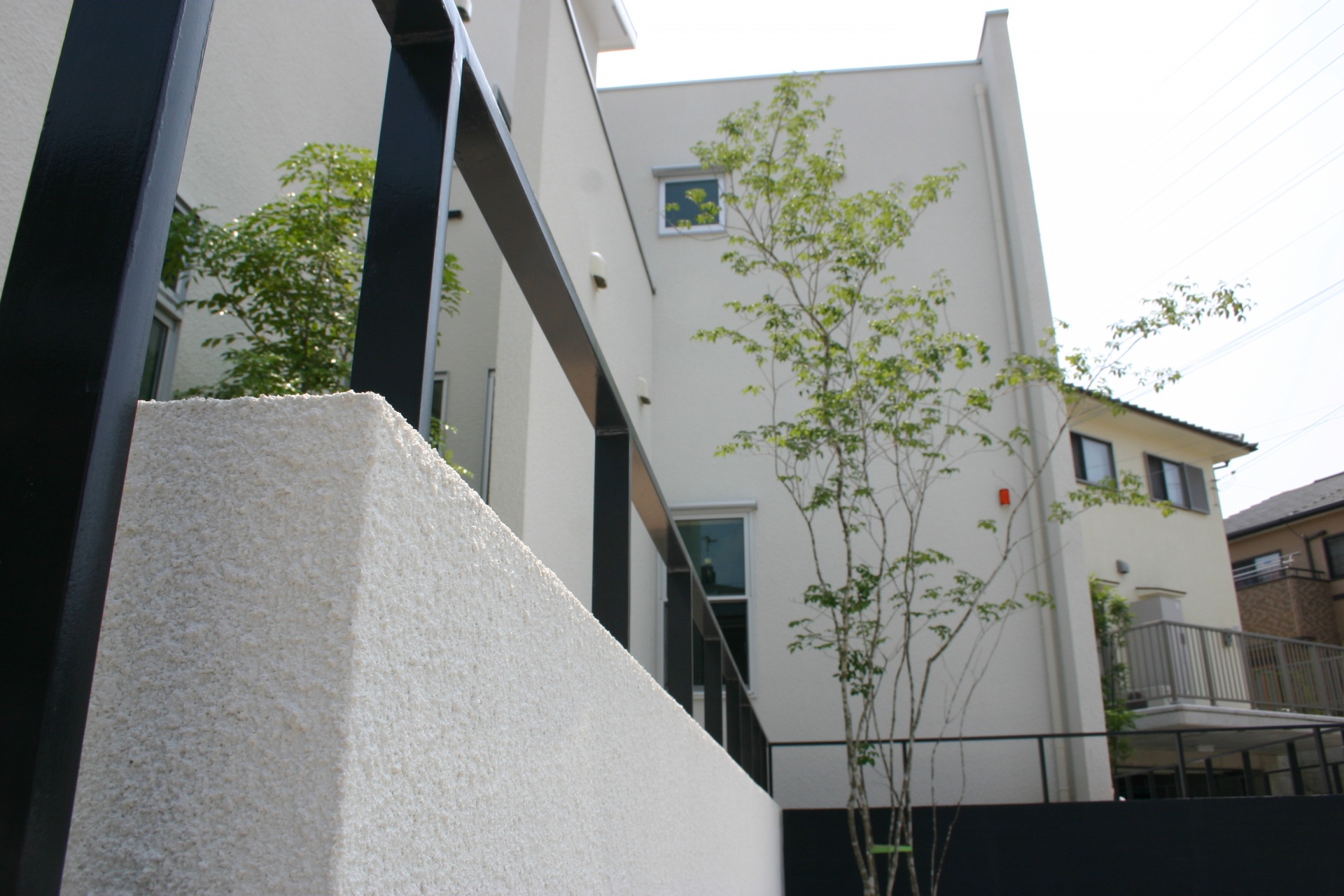 施工実績 ブラックアンドホワイトシンプルエクステリア 神戸市新築外構 神戸市エクステリア施工例。ブラックとホワイトのツートンカラーにフラットバーのオリジナルフェンスを組み合わせたシンプルモダンエクステリア施工例です。シンボルのアオダモの植栽がホワイトの外壁にやさしく緑を映しだします。 オリジナルのフラットバーフェンスでシンプルモダンのエクステリアを演出します。 ブラックモダンエクステリア。 グレーとホワイトとブラックのコラボシンプルエクステリア。
