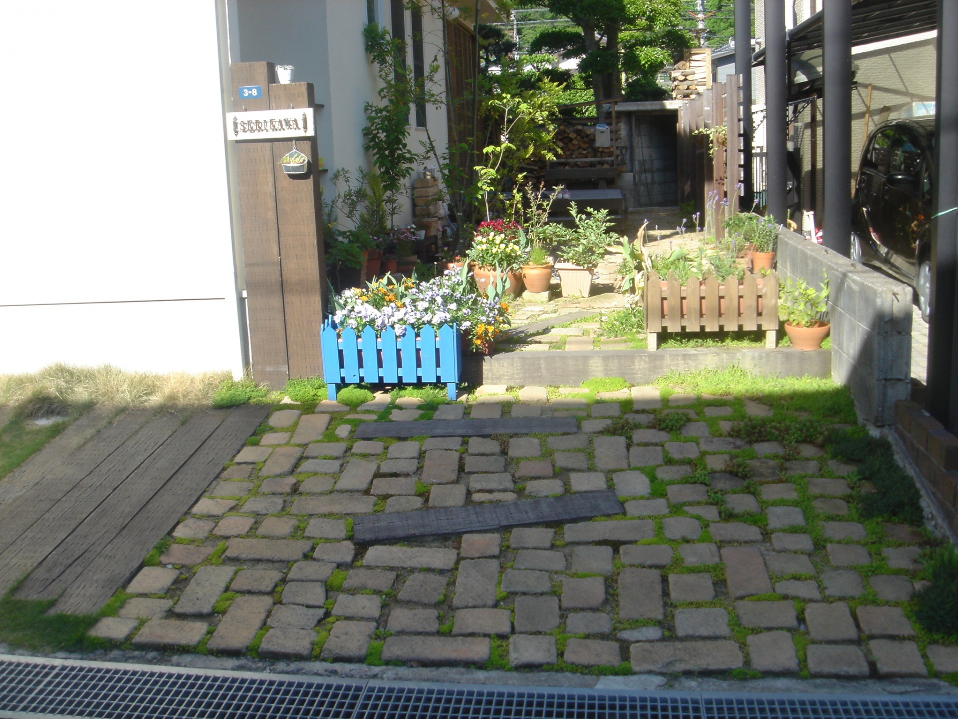 施工実績 経年変化を楽しむお庭 姫路市S様邸 固めずにアンティークレンガや枕木を使って、自然な風合いをご希望されていました姫路市S様。 枕木の門柱、階段やレンガや植物が経年変化でより一層、ナチュラルなお庭へと変わっていきます。 完成してから2年が経ちました。 古びた感じがGoodです。 セダムがレンガの目地を埋めていきます