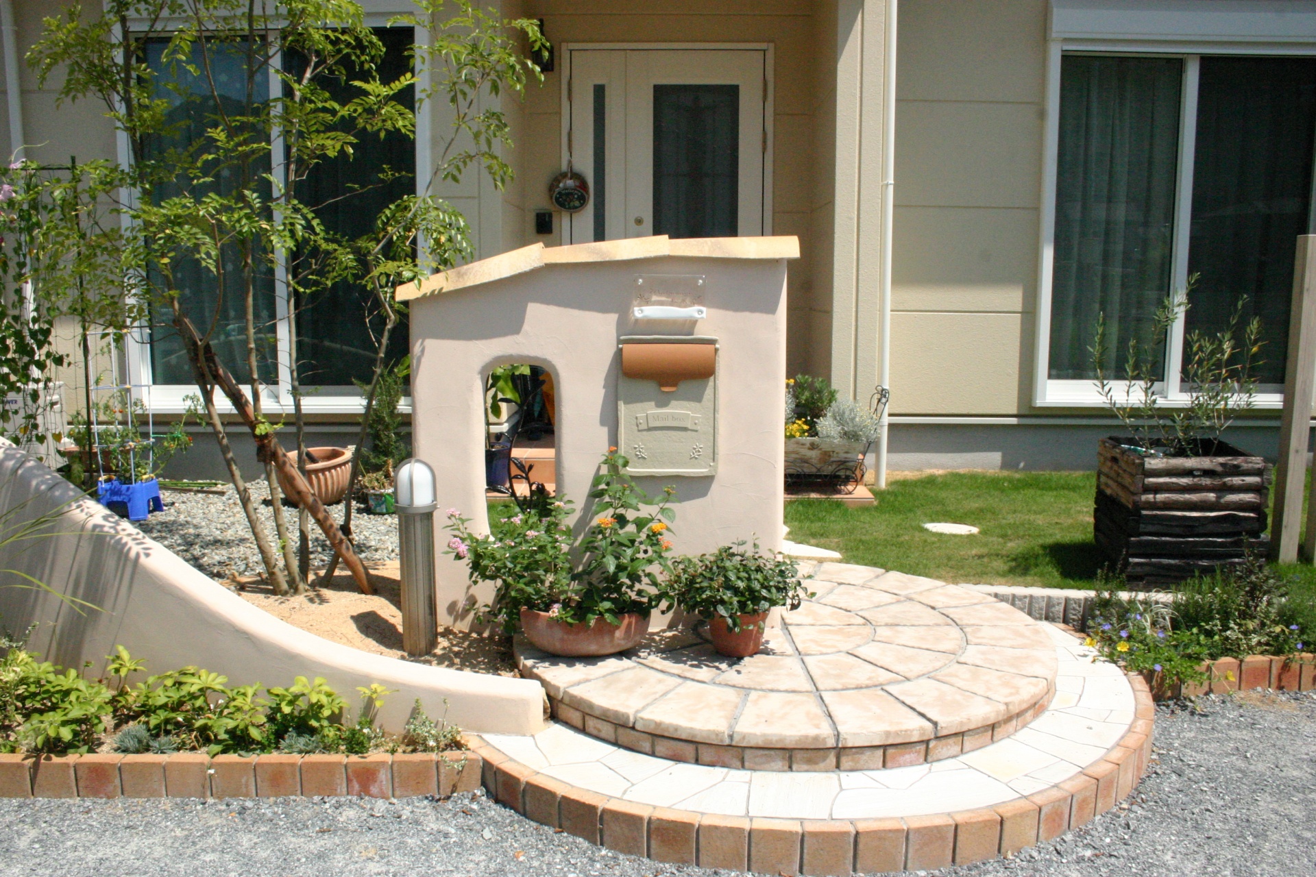 施工実績 自然石で縁取った洗い出しアプローチ 玄関に近づくにつれて幅を絞ることでラインが強調されるデザインとなっています。 固める部分が多い場合は、アプローチは仕様を変えてあげる事でインパクトがでます。
