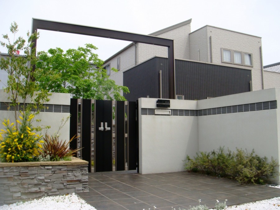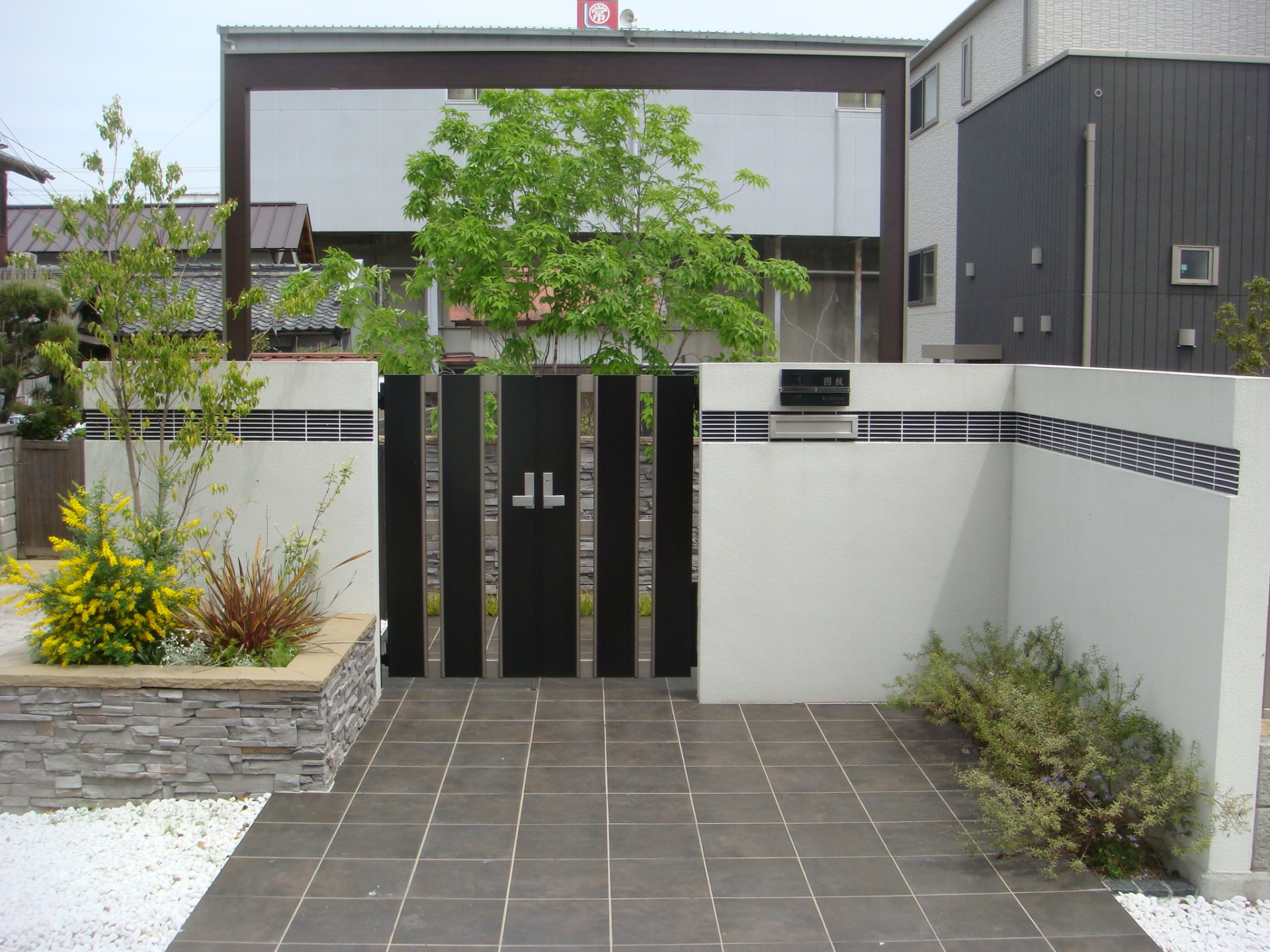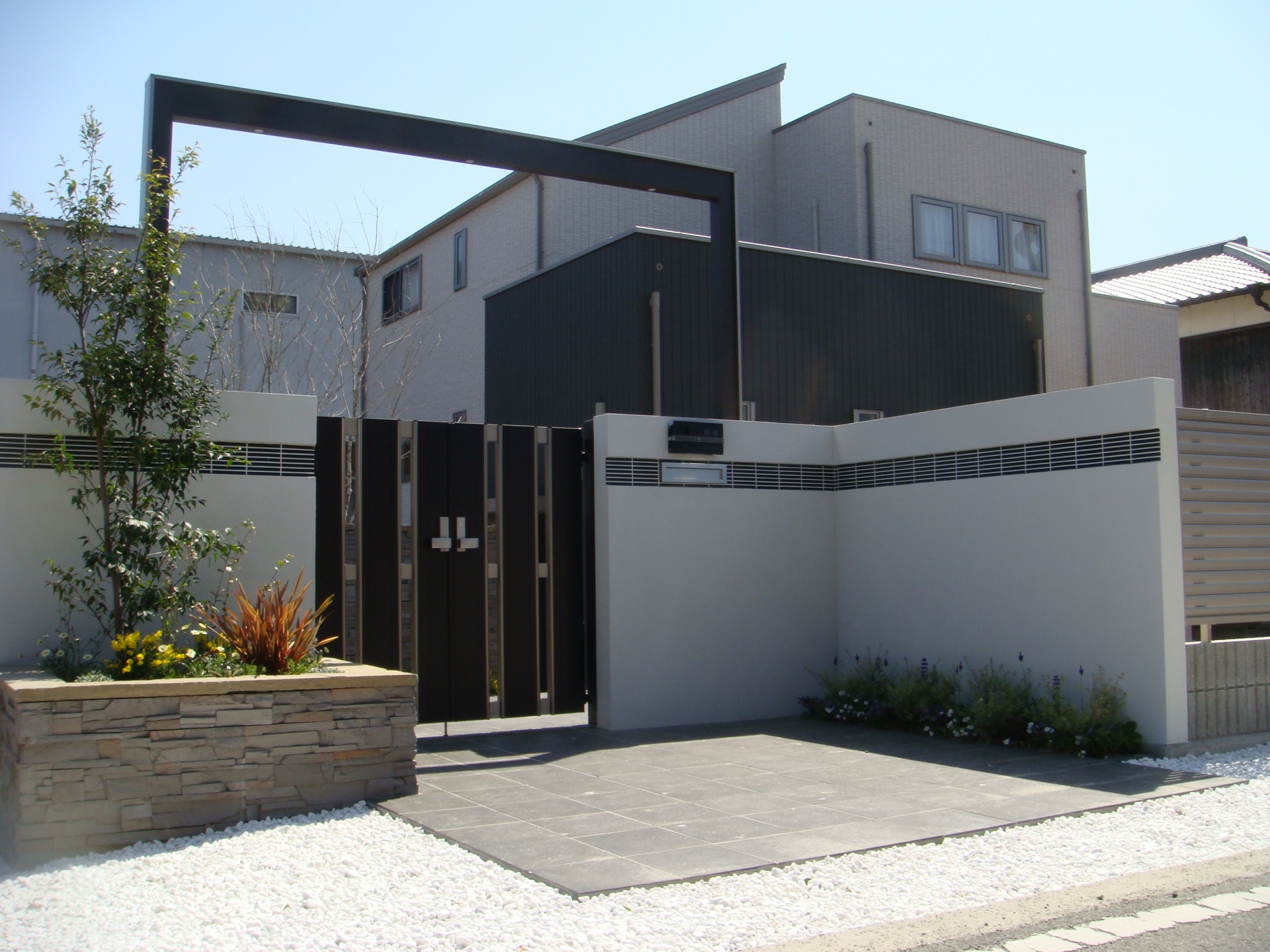施工実績 水平ラインで豪華さを強調した門周り たつの市K様邸 「たつの市のこの場所に異空間を!」という合言葉で始まりましたK様との打ち合わせが懐かしいです。 建物外壁のモノトーン調に合わせた、色使いで門周りをまとめました。 白い吹付け壁に黒のタイルでライン取り。 門扉のスリット部分から石積み調の意匠壁が見えます。 色目がシンプルですので、シンボルツリーのアオダモ・彩られた花壇の植栽がより美しさを強調してくれます。 施工完了時は2月頃、新緑の時期が待ち遠しいです フレーム効果のあるアーチの奥にはシンボルツリーのアオダモ アイポイントの石積み調ウォール 門扉を開けても繋がる空間