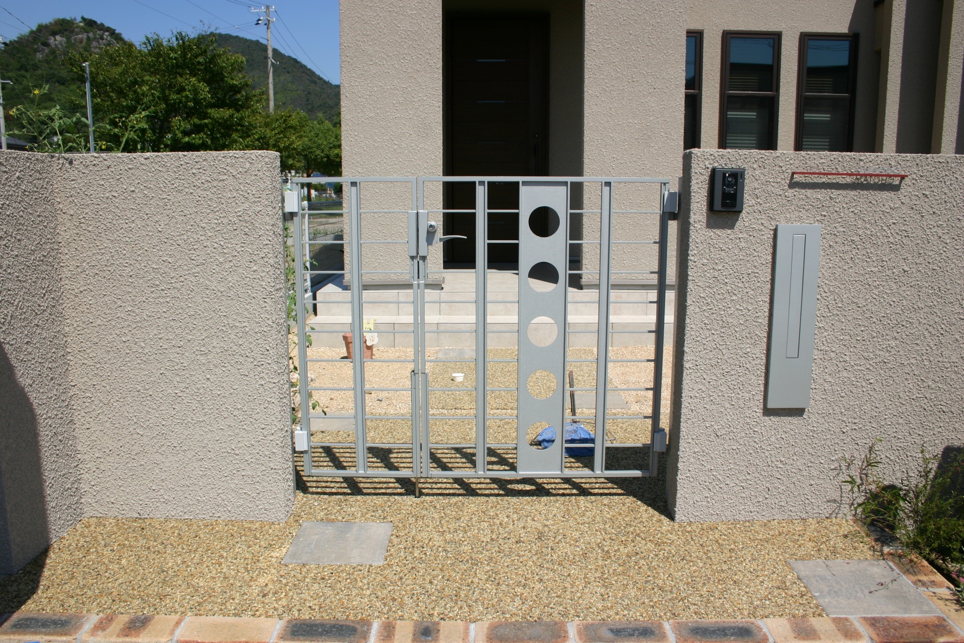 施工実績 赤穂市新築外構 端正な直線美を表現した門周り 個性をさりげなく演出する、アルミ鋳物門扉。 重厚感かつ端正な直線が美しく、建物の水平ラインと良くマッチしています。 リズミカルに配置された壁の前には植栽スペースを設けて、柔らかさを出しています。 アルミ鋳物門扉を使用した開放感のある門周り 3枚壁をリズミカルに配置しました